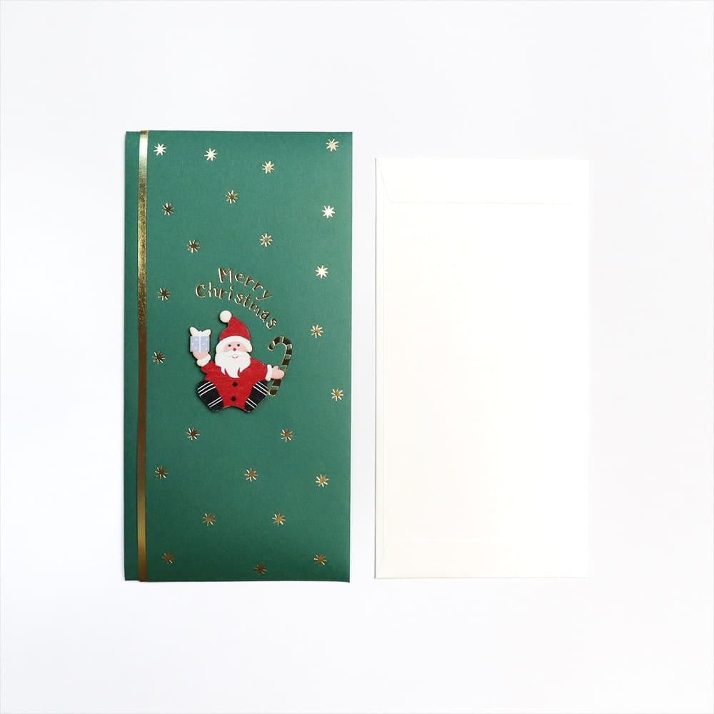 【クリスマス】祝儀袋 メリークリスマス サンタ グリーン 緑 箔押し 立体パーツ