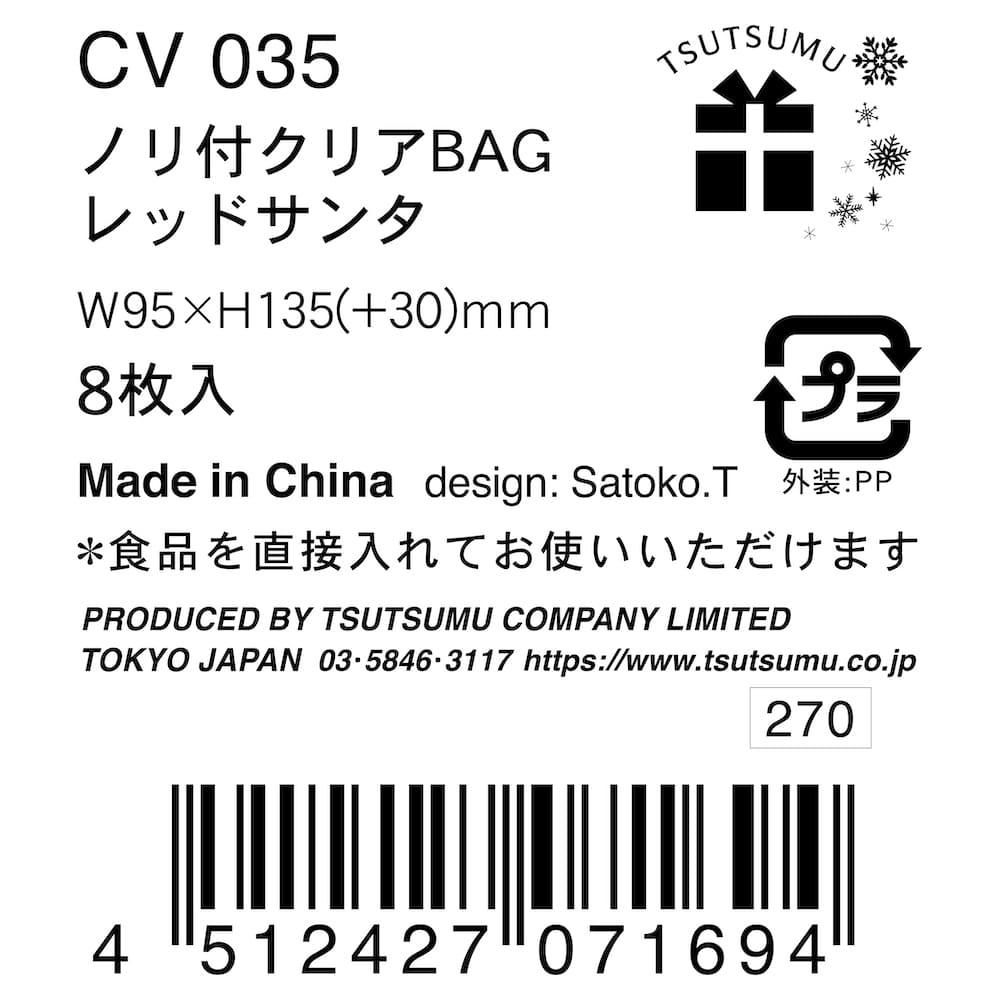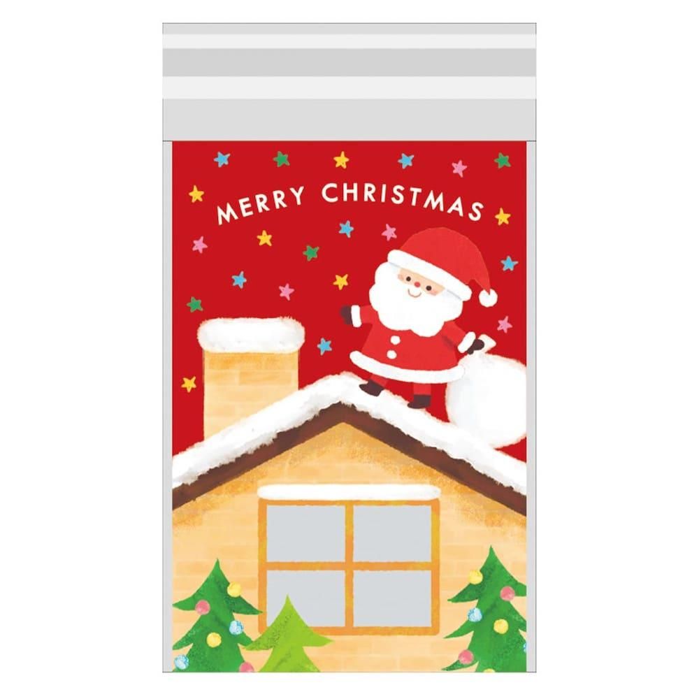 【クリスマス】ビニールバッグ 糊付き クリアバッグ レッドサンタ 赤