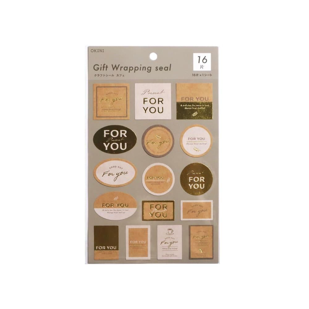 OKINI 100均 ギフトシール 10シート 160片 箔押し カフェ クラフト フォーユー FORYOU