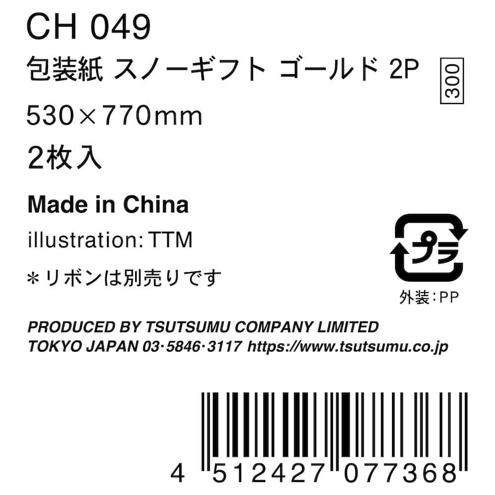 【クリスマス】包装紙 ラッピングペーパー スノーギフト ゴールド 金 シック 2枚入