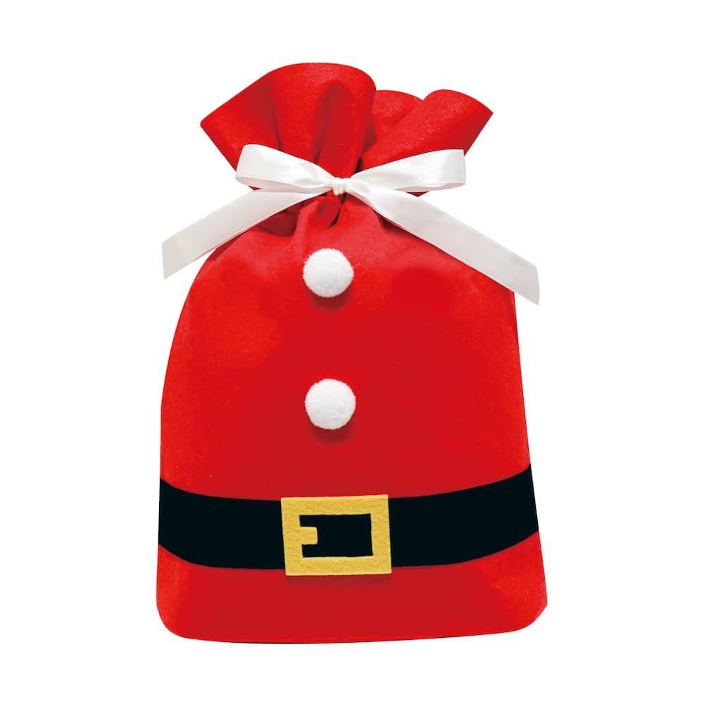 かわいらしいサンタクロースの衣装がデザインされた、ラッピング用巾着バッグです。