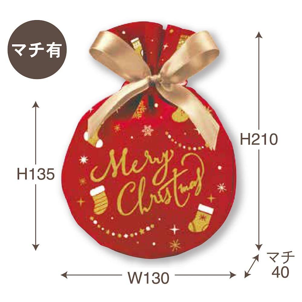 【クリスマス】巾着バッグ ラッピング袋 ラウンド巾着 クリスマスレッド 赤 丸 グリッター キラキラ
