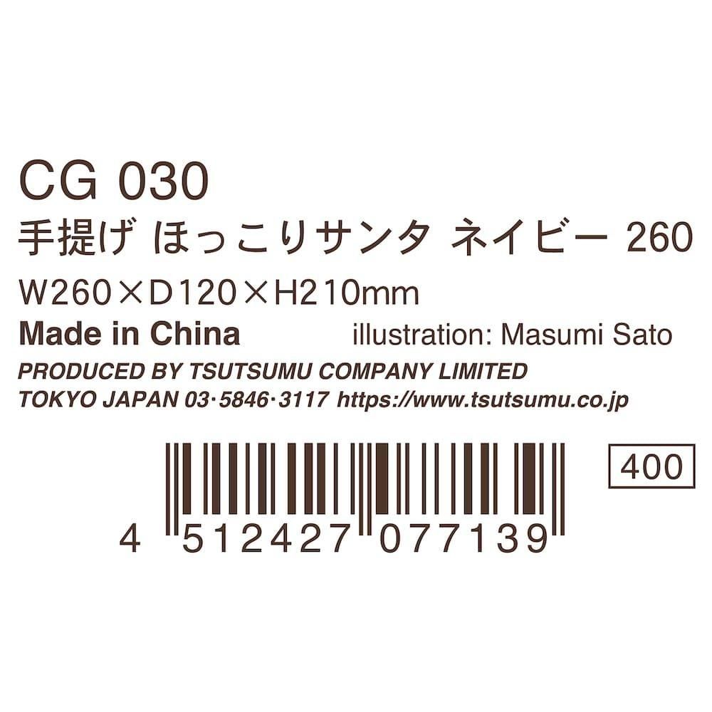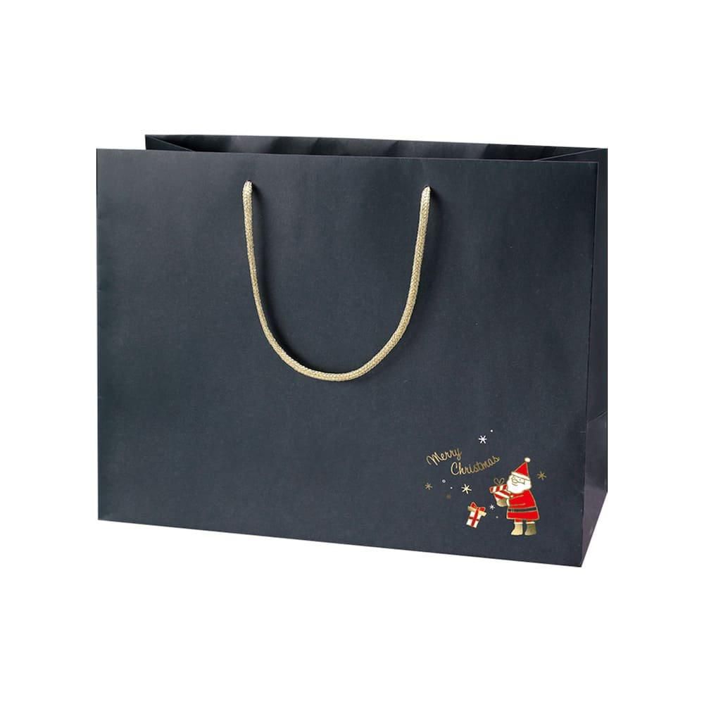 【クリスマス】手提げ 紙袋 ほっこりサンタ ネイビー 260 紺 箔押し