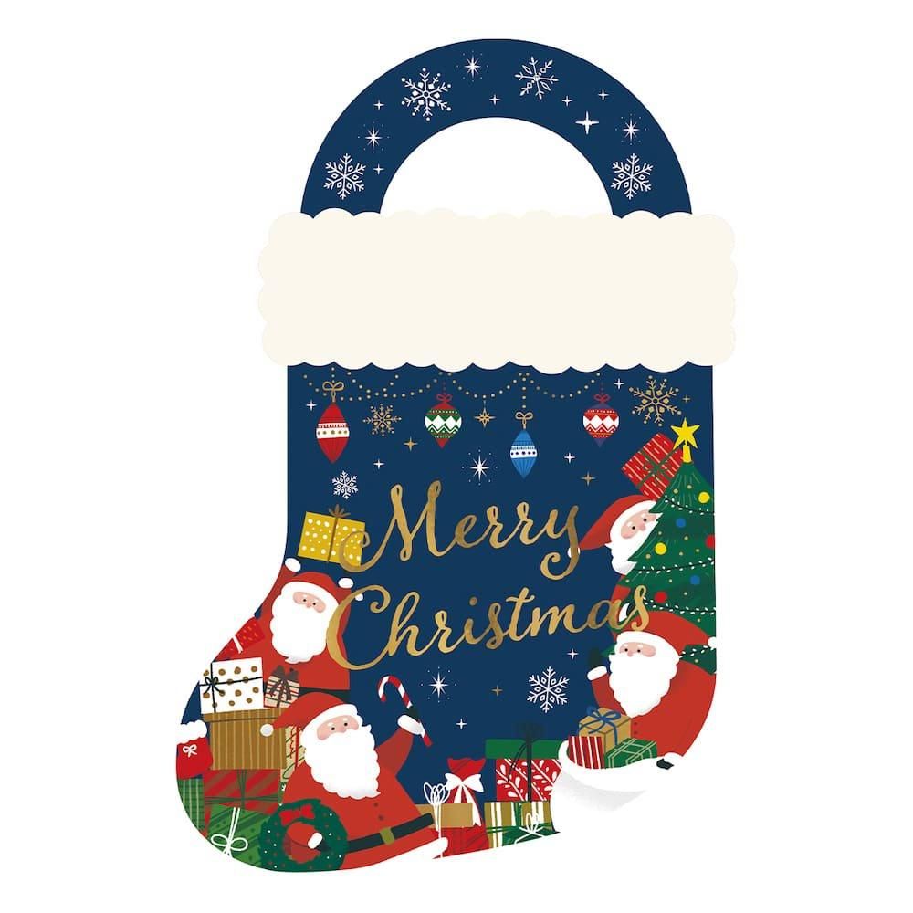 靴下型にダイカット(型抜き)されており、光沢のある金印刷が施され、特別感があります。