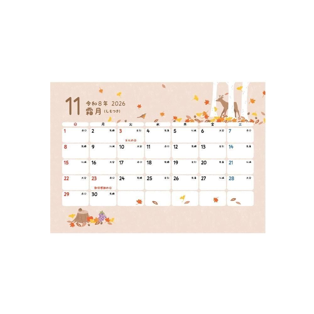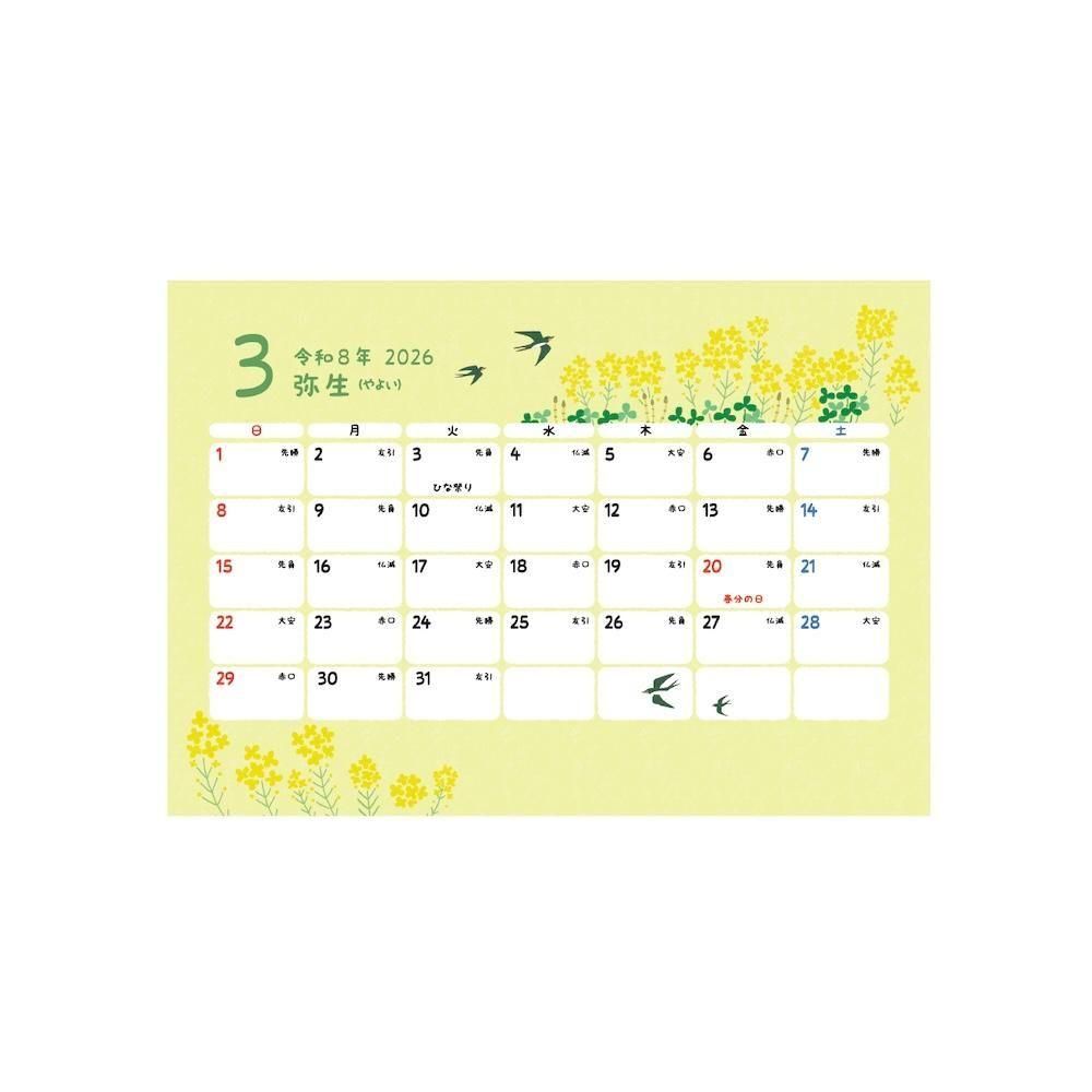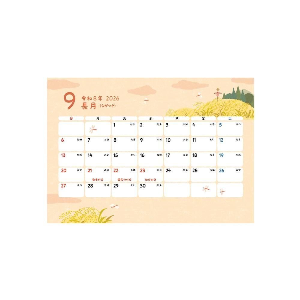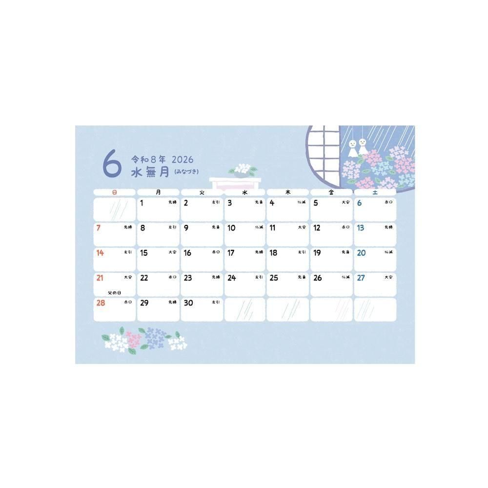 季節のモチーフが毎月楽しめる、日曜始まりの卓上カレンダーです。