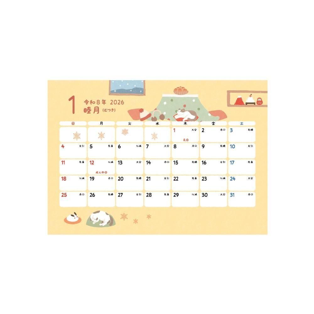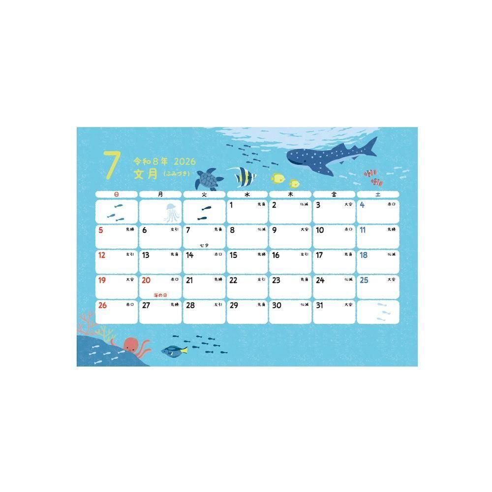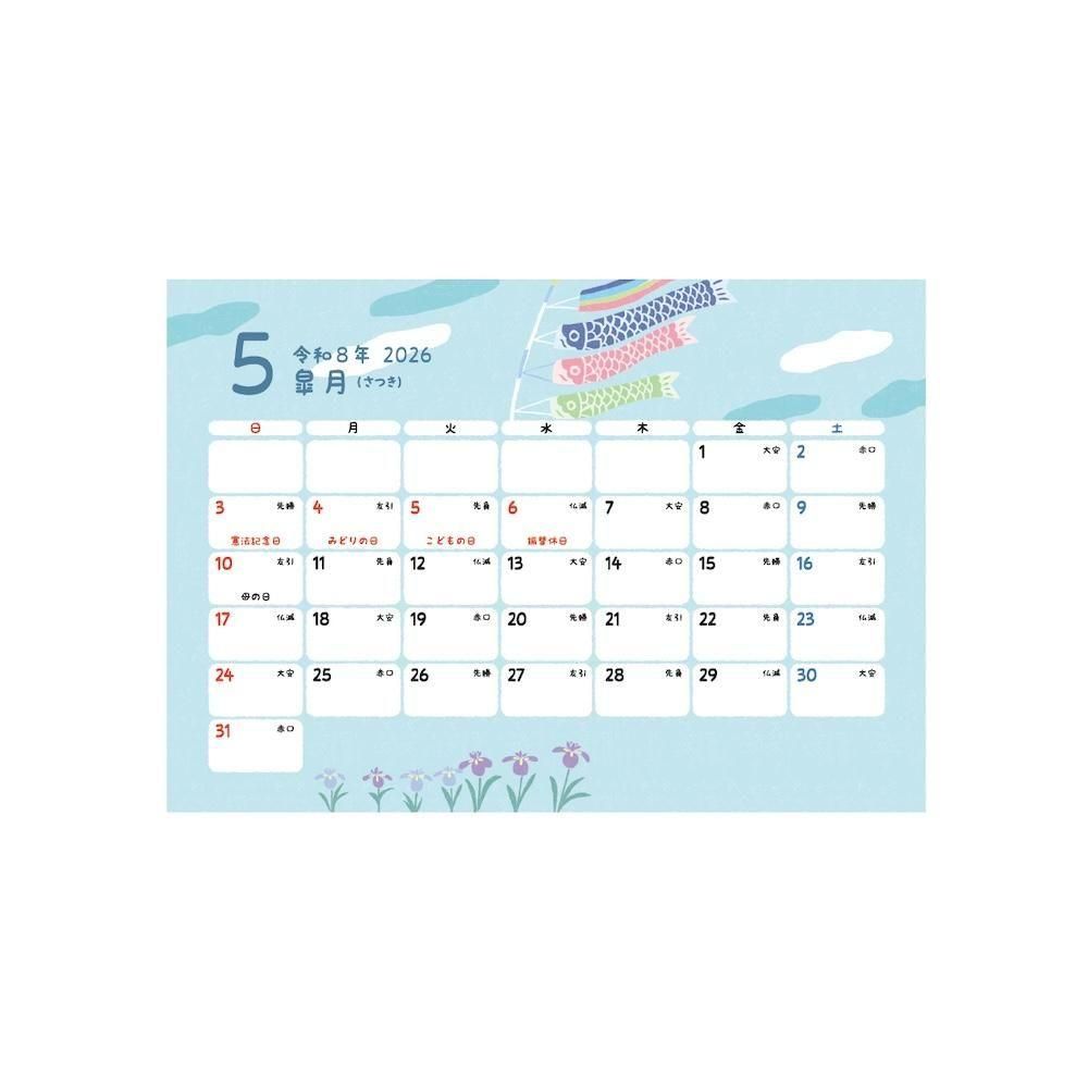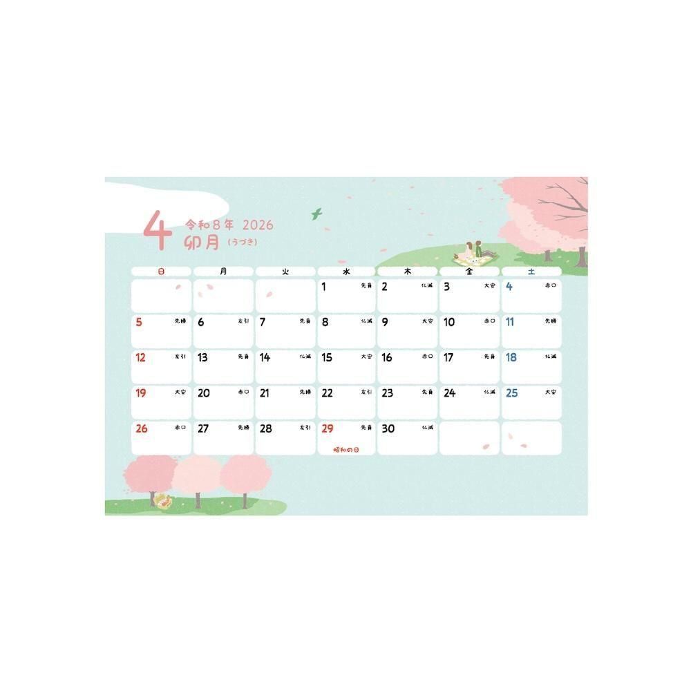 季節のモチーフが毎月楽しめる、日曜始まりの卓上カレンダーです。
