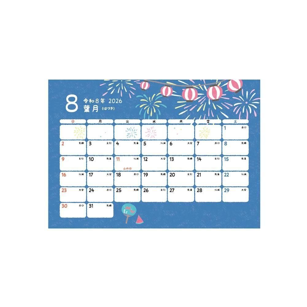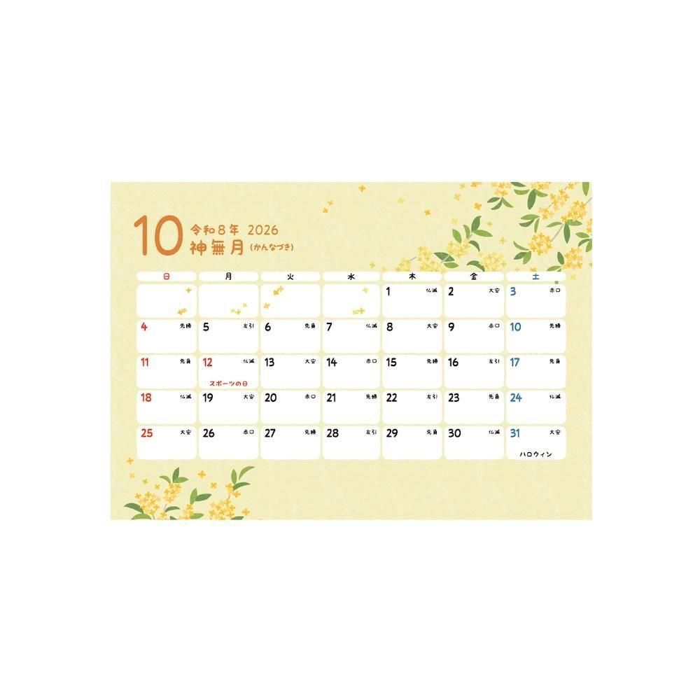 六曜入りで、日付の記載もくっきり見やすい設計。