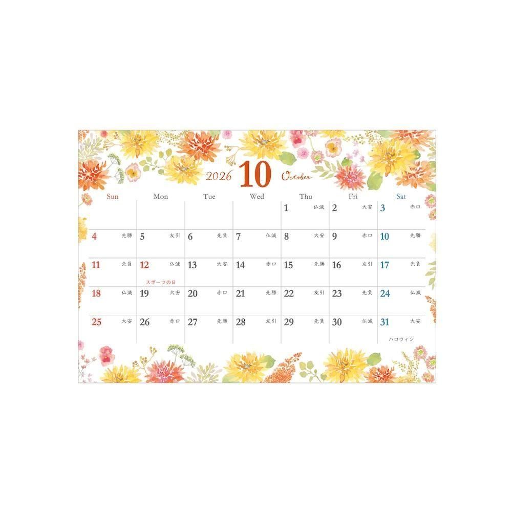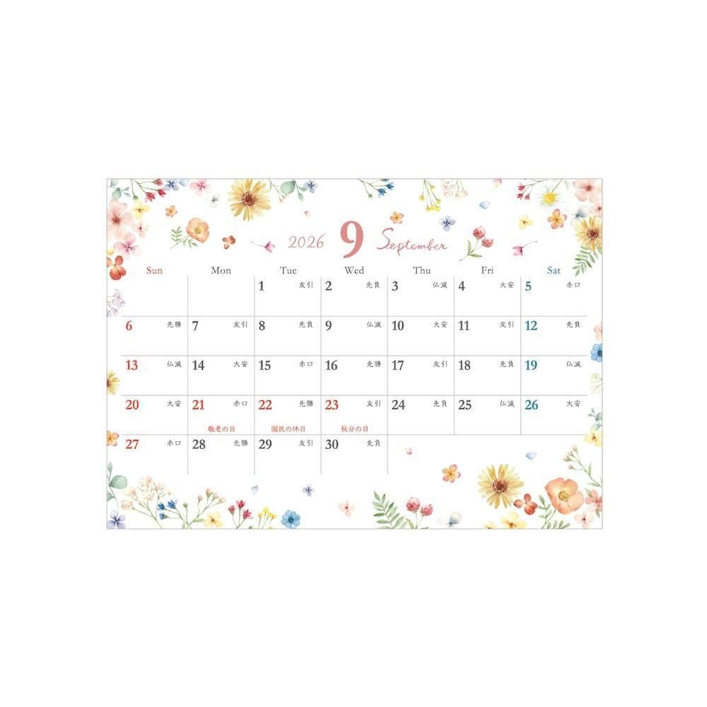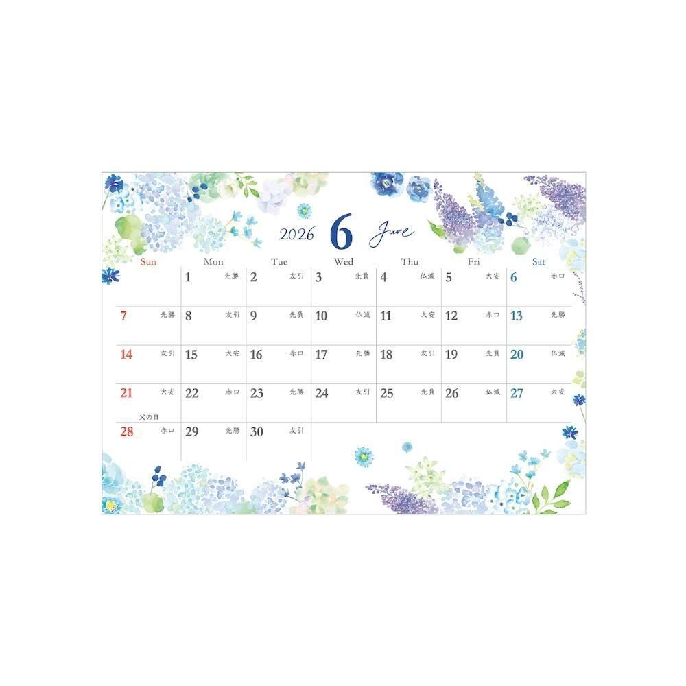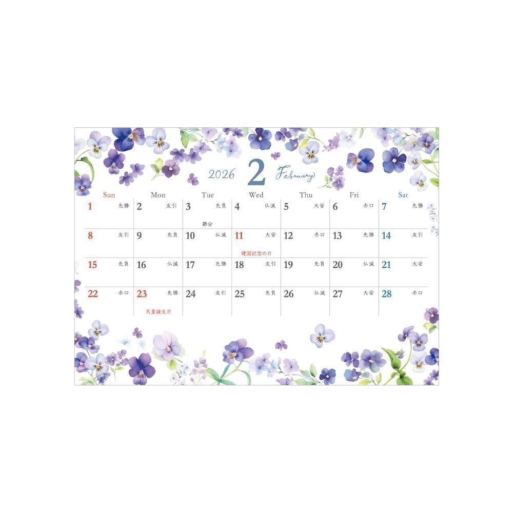 季節の草花が水彩タッチで描かれた、インテリア性のある卓上カレンダーです。