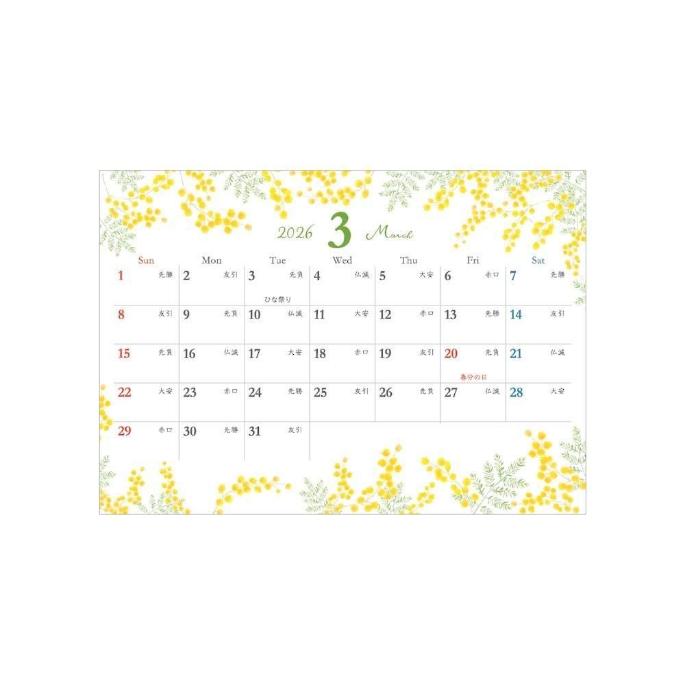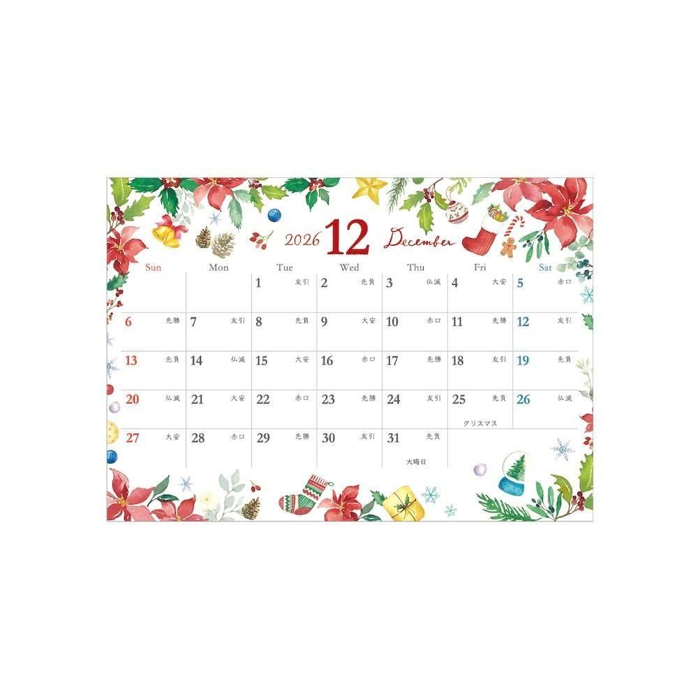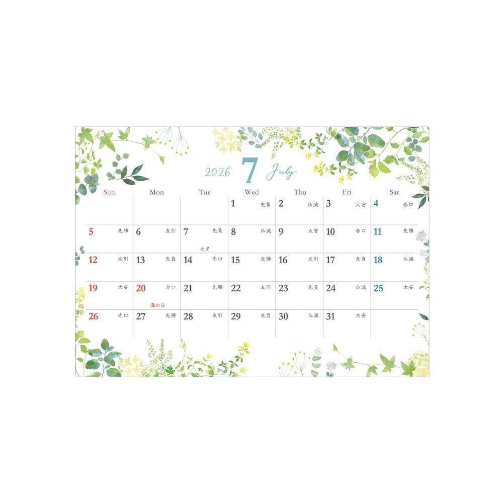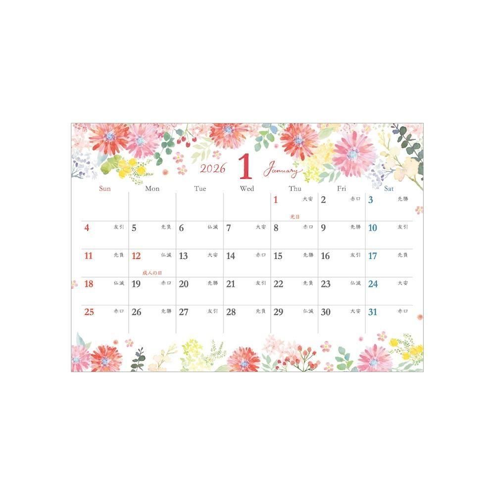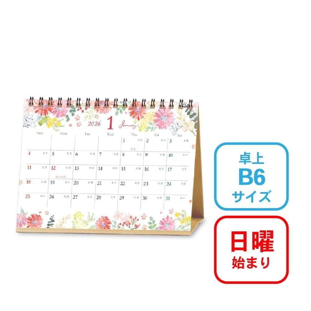 季節の草花が水彩タッチで描かれた、インテリア性のある卓上カレンダーです。