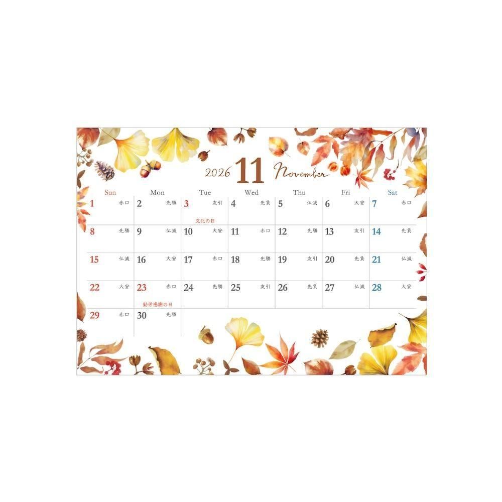 六曜に加え、一般的なイベントや祝日も記載されており、予定の確認に便利です。