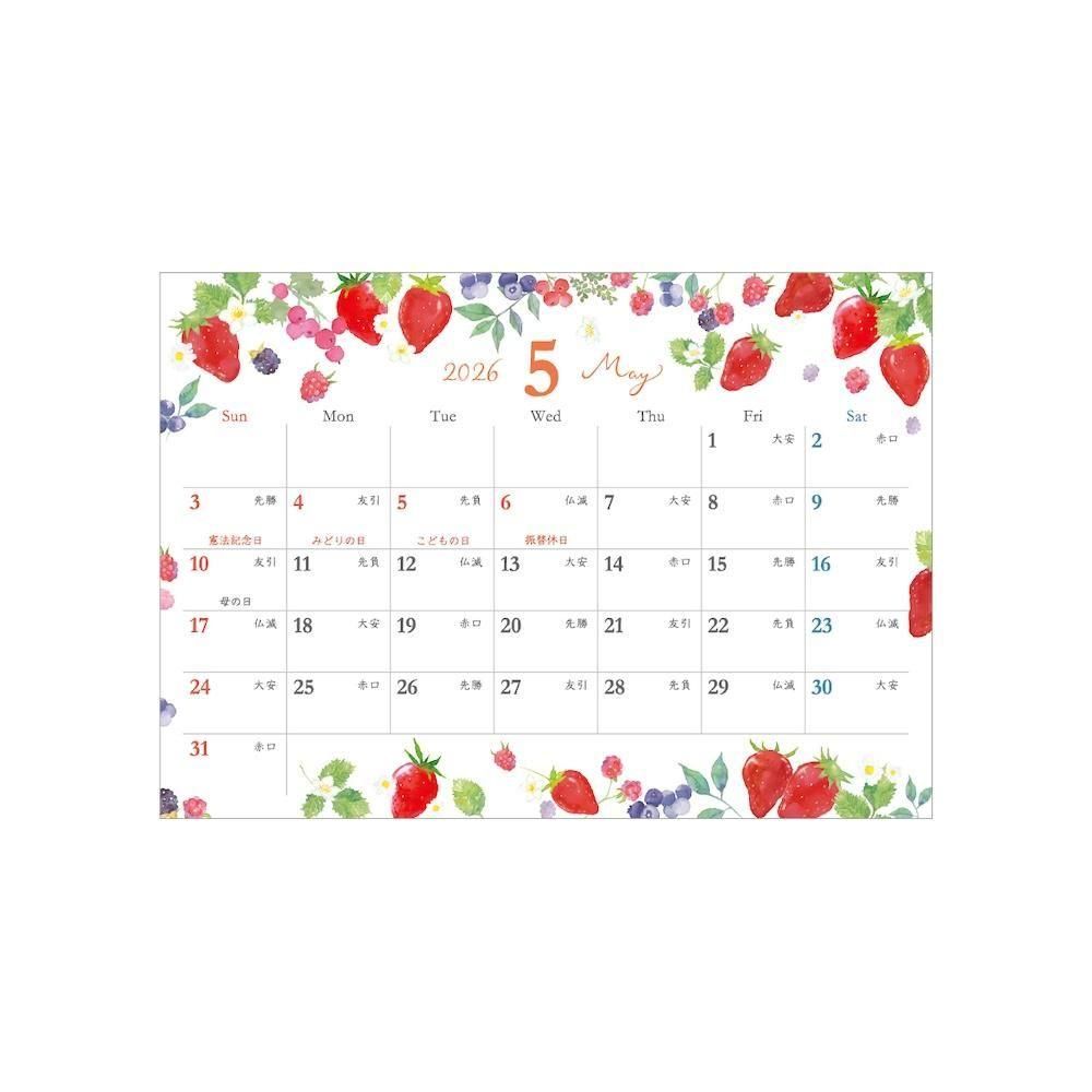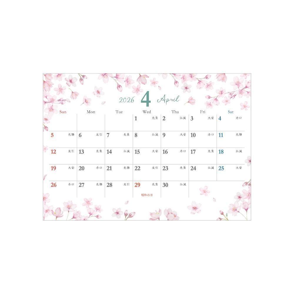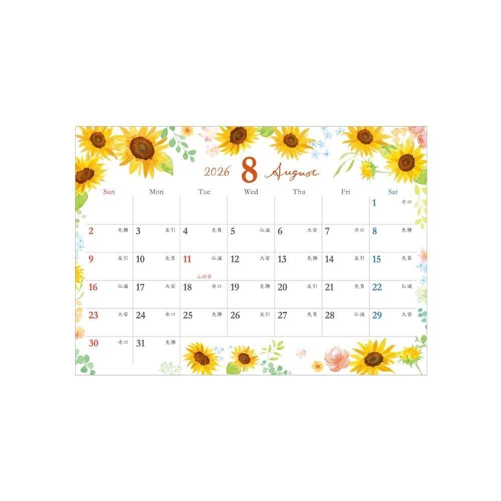 日曜始まりで週の流れがひと目でわかり、予定管理にも便利。
