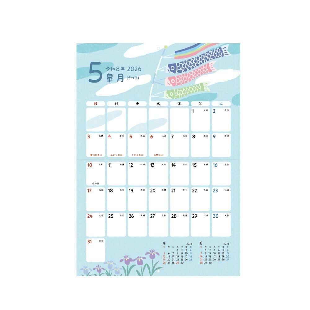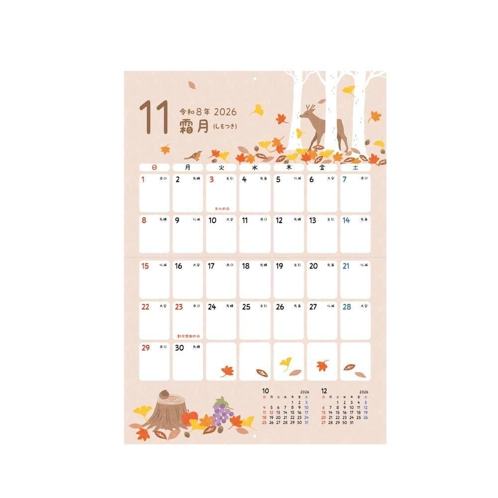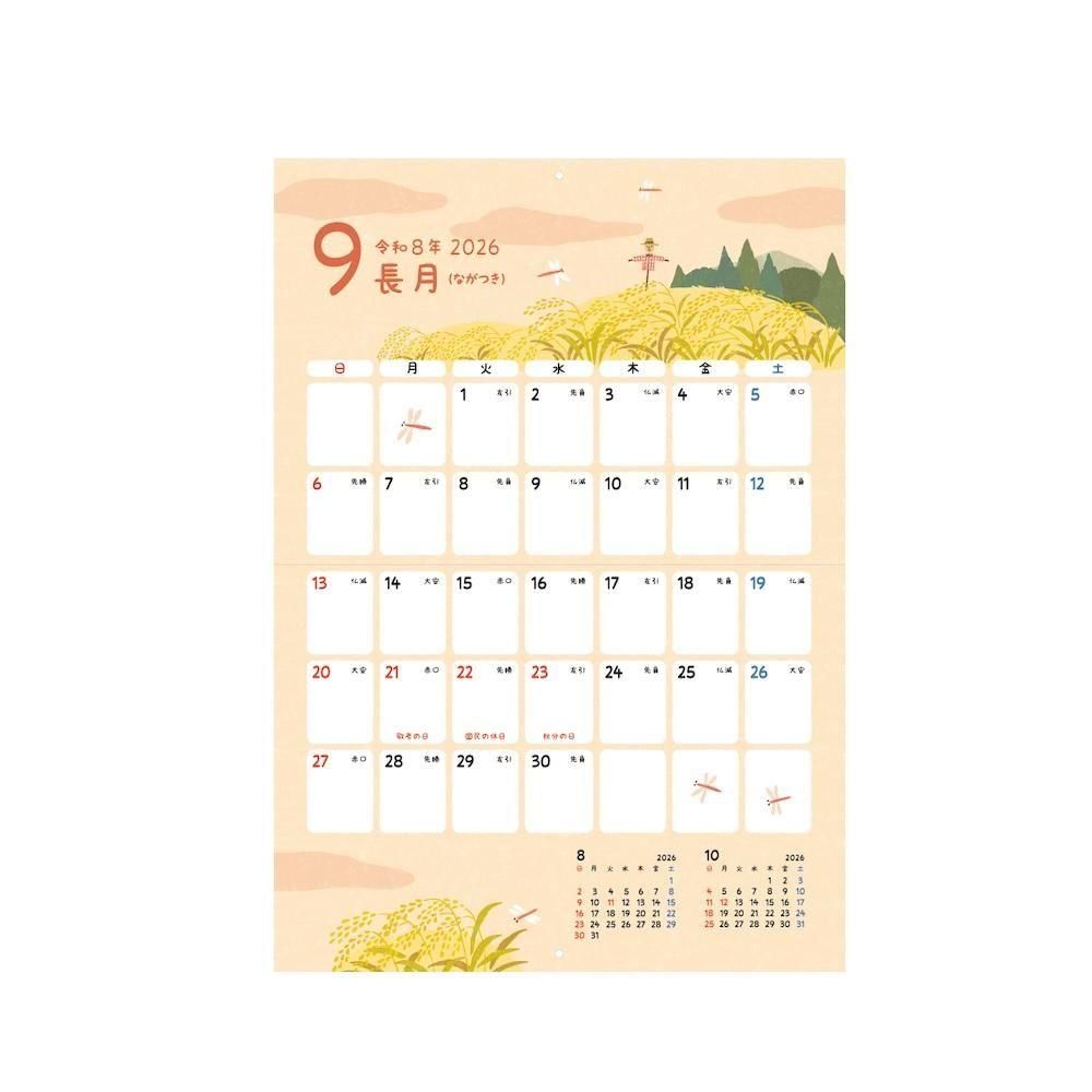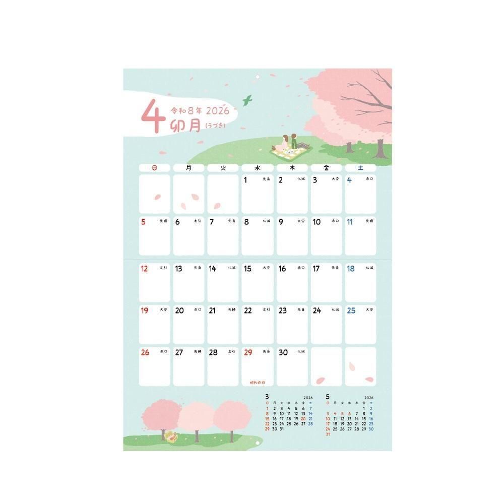月ごとに描かれた動植物や行事のイラストが、ほのぼのとした雰囲気で癒しを与えてくれます。