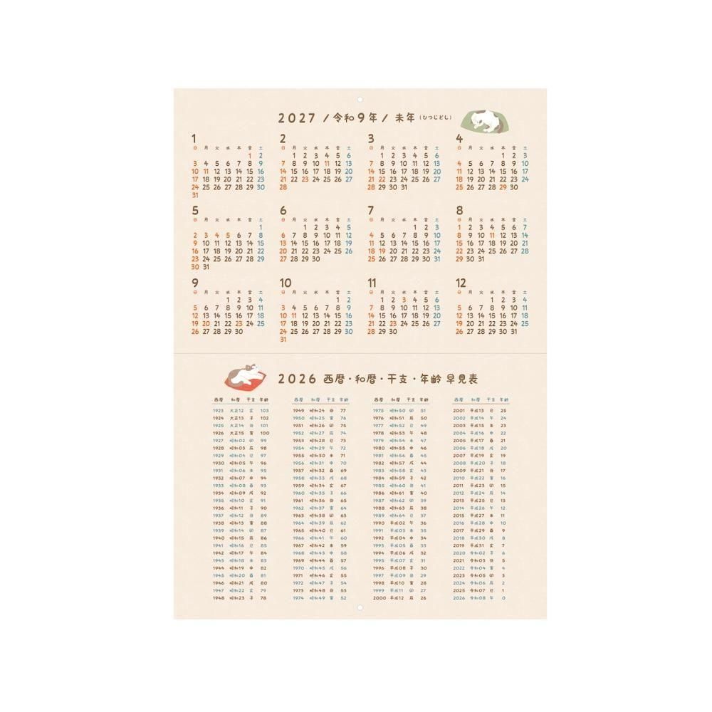 巻末には2027年の年間カレンダーと、西暦・和暦・年齢・干支の早見表を掲載。