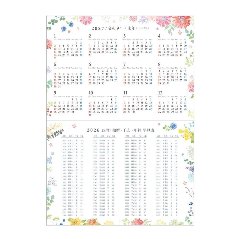 巻末には2027年の年間カレンダーと、西暦・和暦・年齢・干支が一目でわかる早見表を掲載。