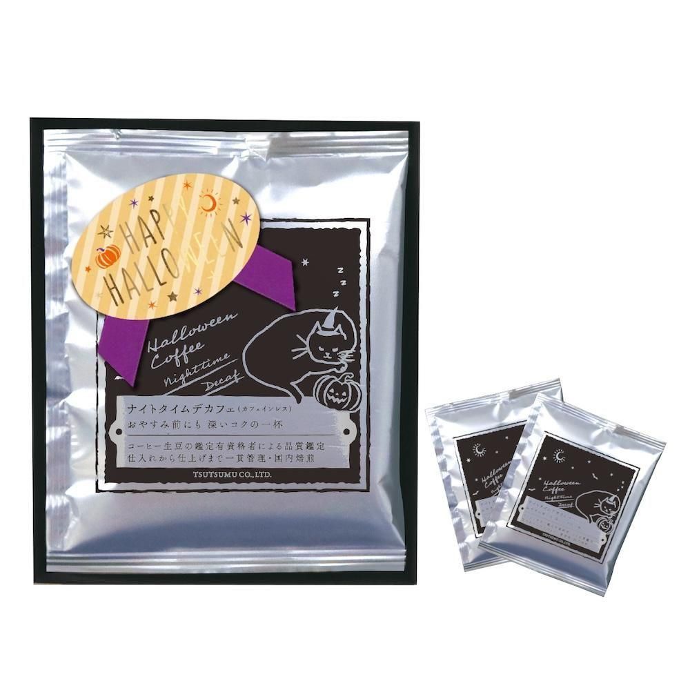 香り高いオリジナルのデカフェブレンドコーヒーに、ハロウィン仕様の箔押しリボンシールを添えた、気軽に贈れるプチギフトです。