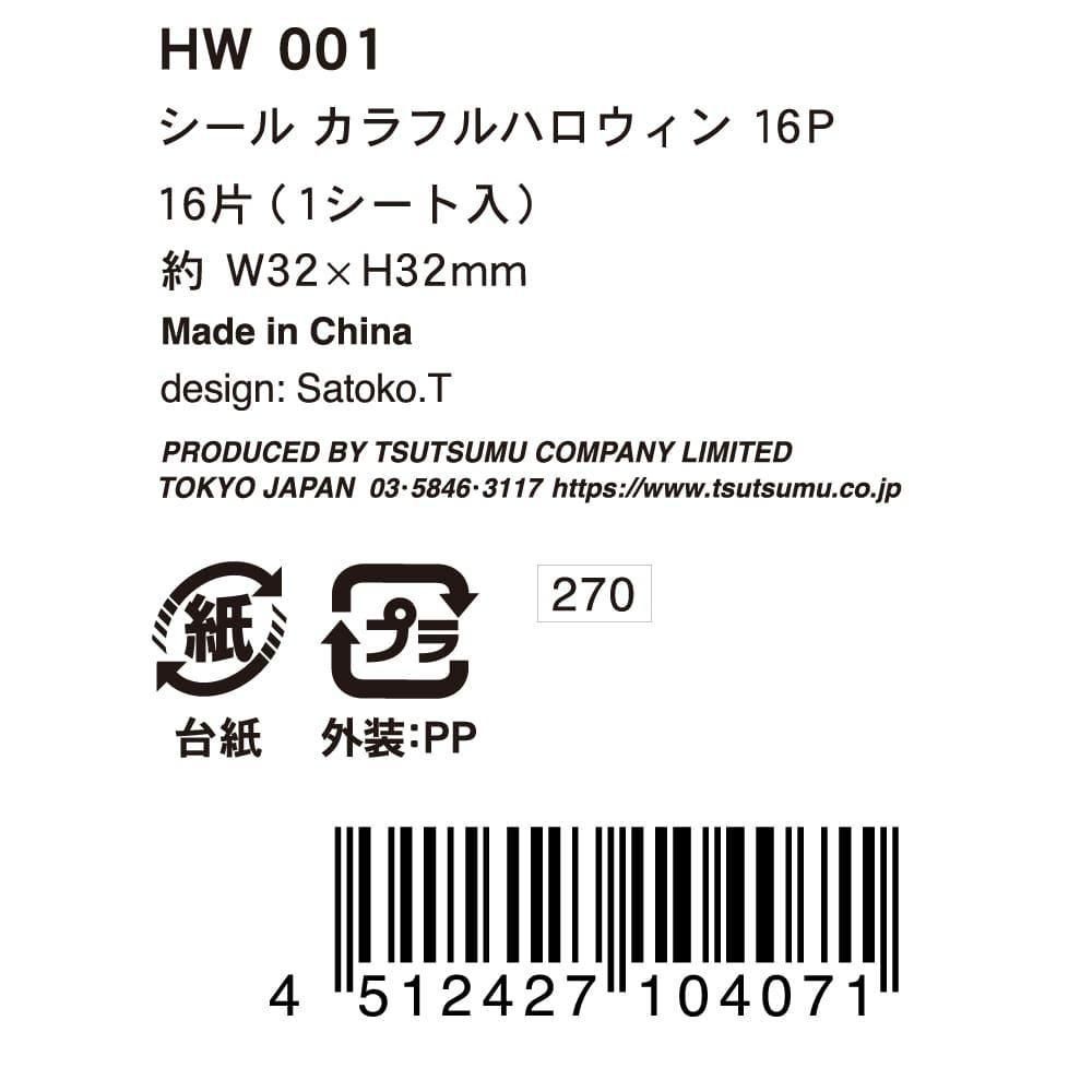 かわいいオバケや黒猫、パンプキンが描かれたハロウィン柄のシールセットです。