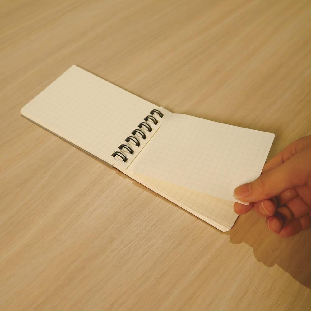 用紙は5mm方眼罫。細めのラインと用紙になじむ配色で、文字も図も美しく整いやすく、アイデア整理から日記、仕事のメモまで自在に活用できます。