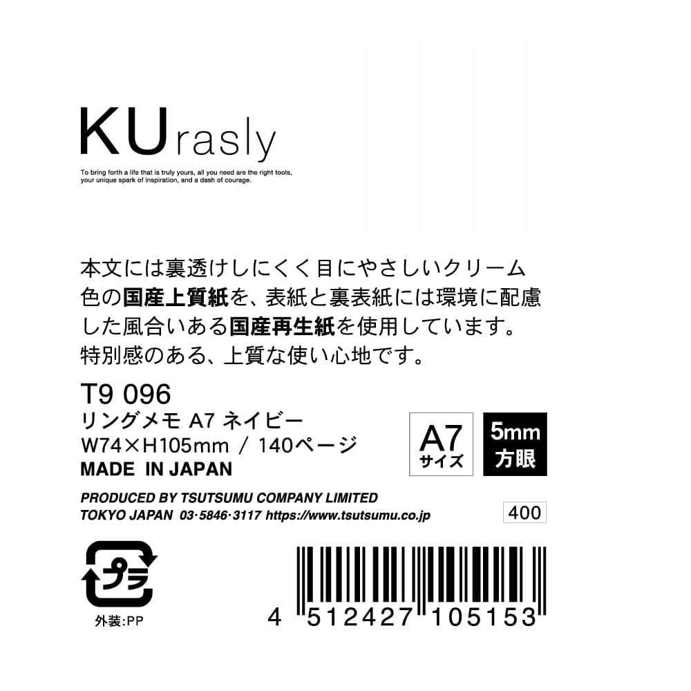 リングメモ A7サイズ ネイビー 5mm方眼 ミシン目入 KUrasly クラスリー