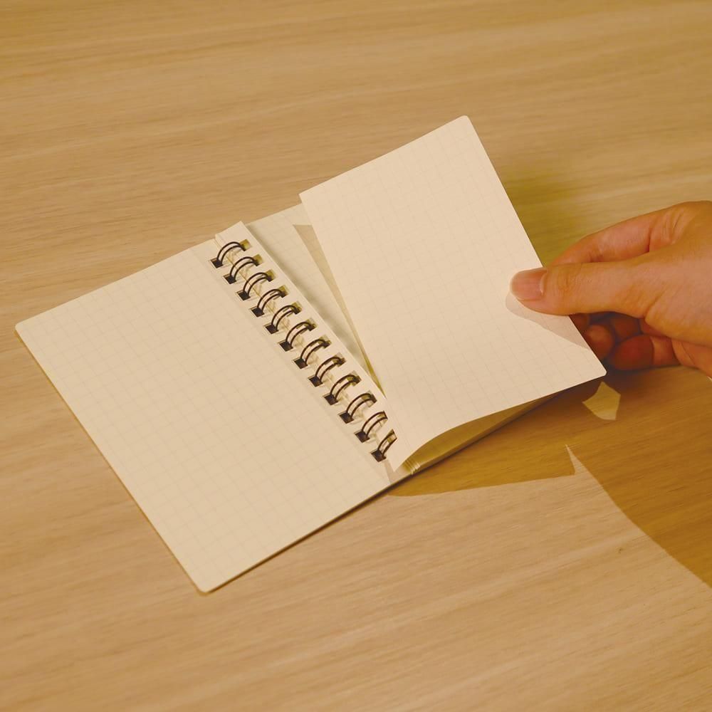 用紙は5mm方眼罫。細めのラインと用紙になじむ配色で、文字も図も美しく整いやすく、アイデア整理から日記、仕事のメモまで自在に活用できます。