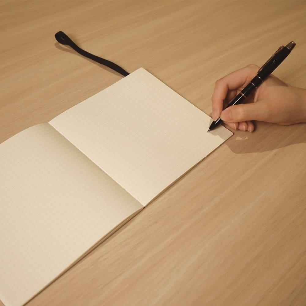 用紙は5mm方眼罫。細めのラインと用紙になじむ配色で、文字も図も美しく整いやすく、アイデア整理から日記、仕事のメモまで自在に活用できます。