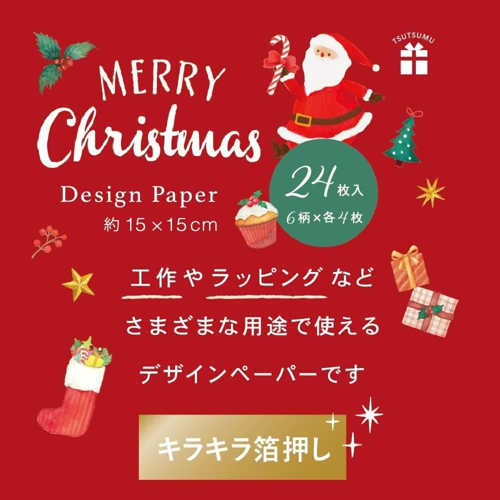 ラッピングや工作に使える、6種アソートのクリスマス柄デザインペーパーです。