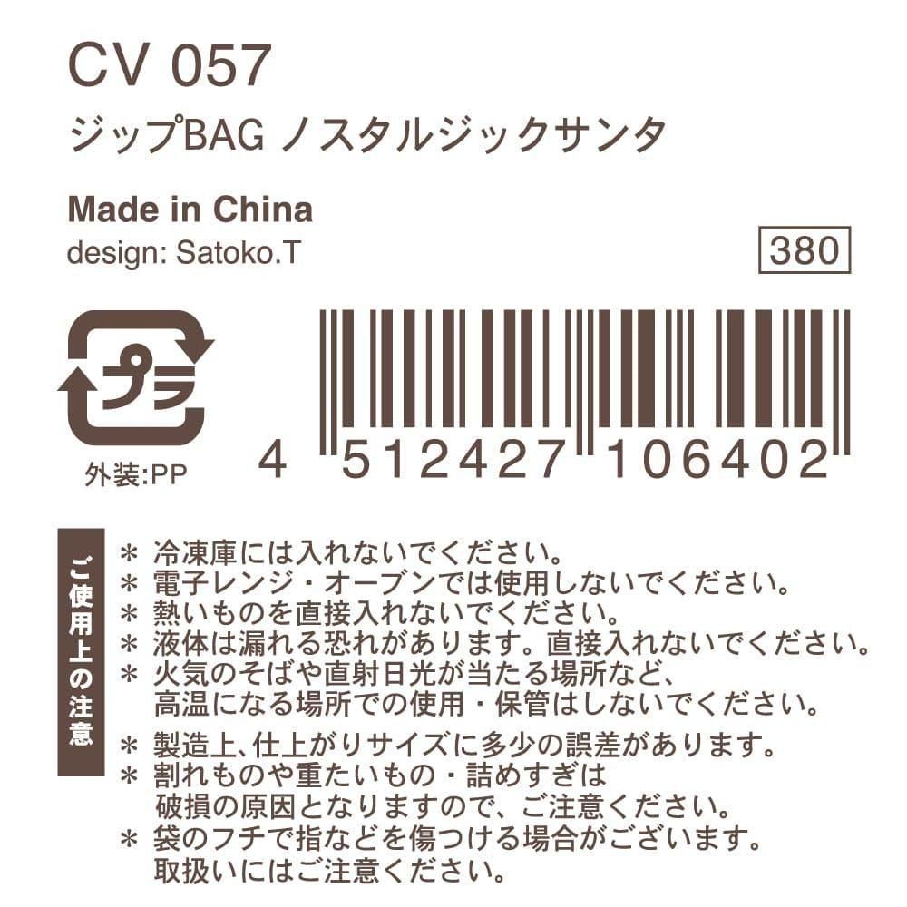クリスマスらしい靴下型の、持ち手付き・底マチ付きジッパーバッグです。