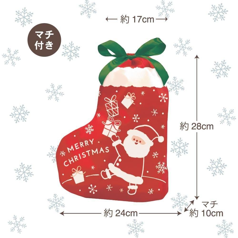 サンタクロースが描かれた、靴下型のラッピング用巾着です。