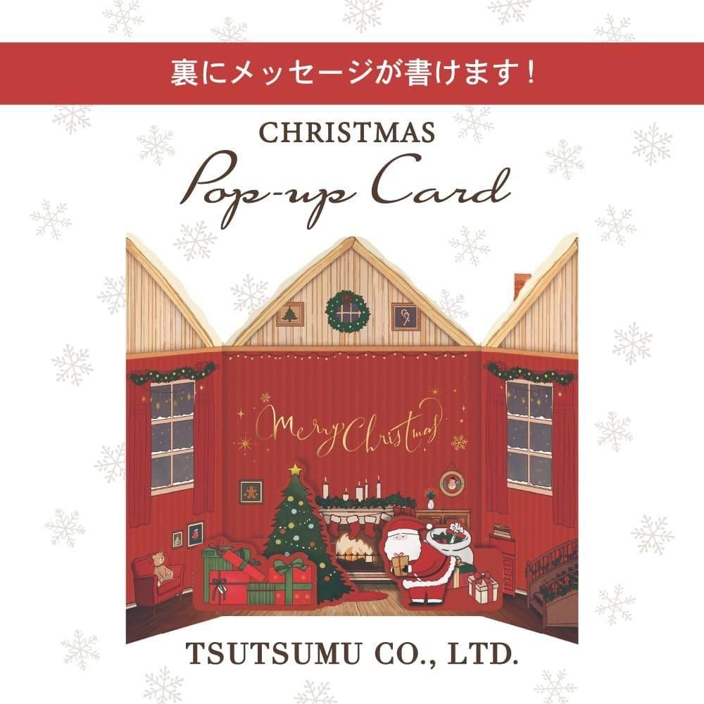 赤い壁に、雪の積もった屋根。絵本に出てくるようなかわいらしいお家型のカードは、扉からサンタクロースがひょっこり顔を出しています。