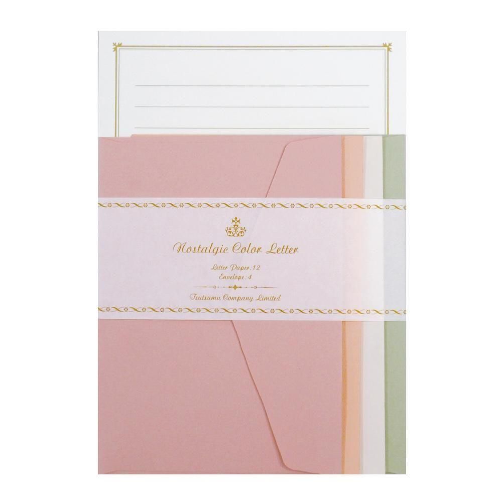 温かみのあるやさしい色味の4種類の封筒がセットになったシンプルなレターセットです。