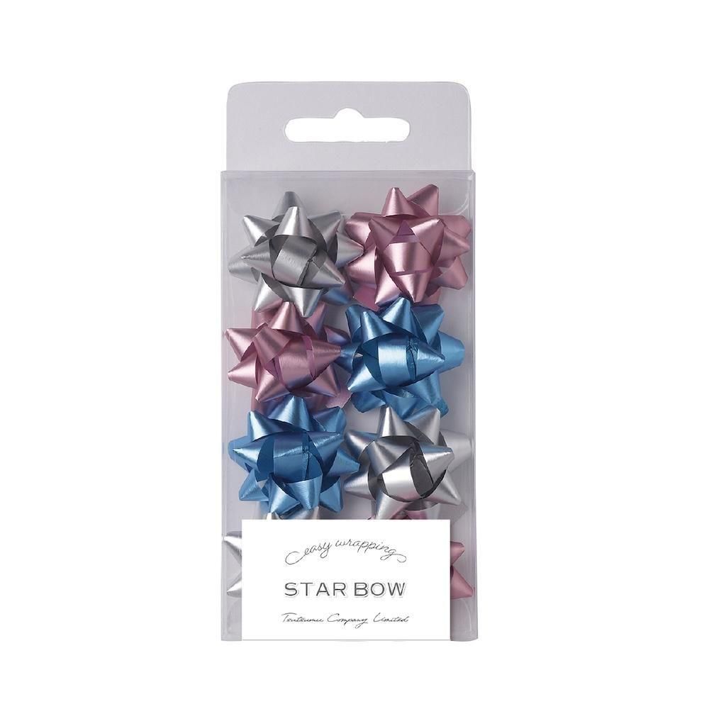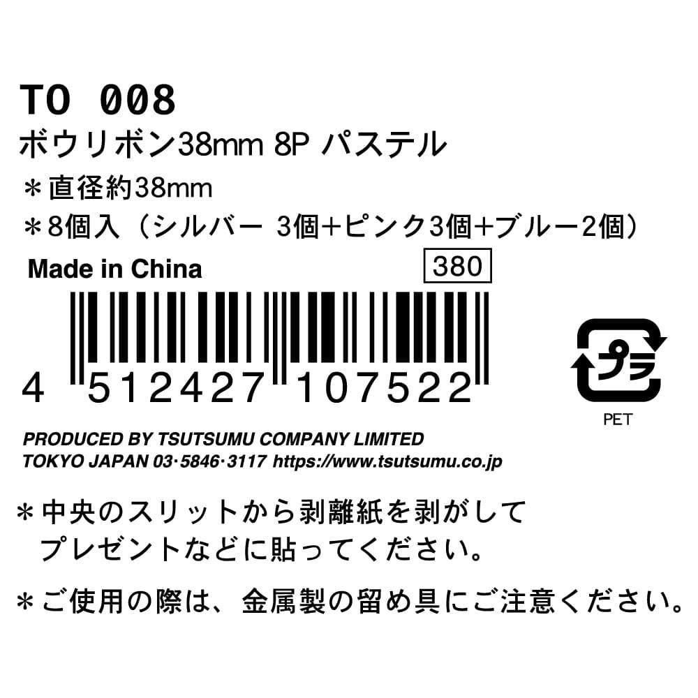 ラッピングシール ボウリボン 38mm 8個入 パステル ピンク 水色 シルバー