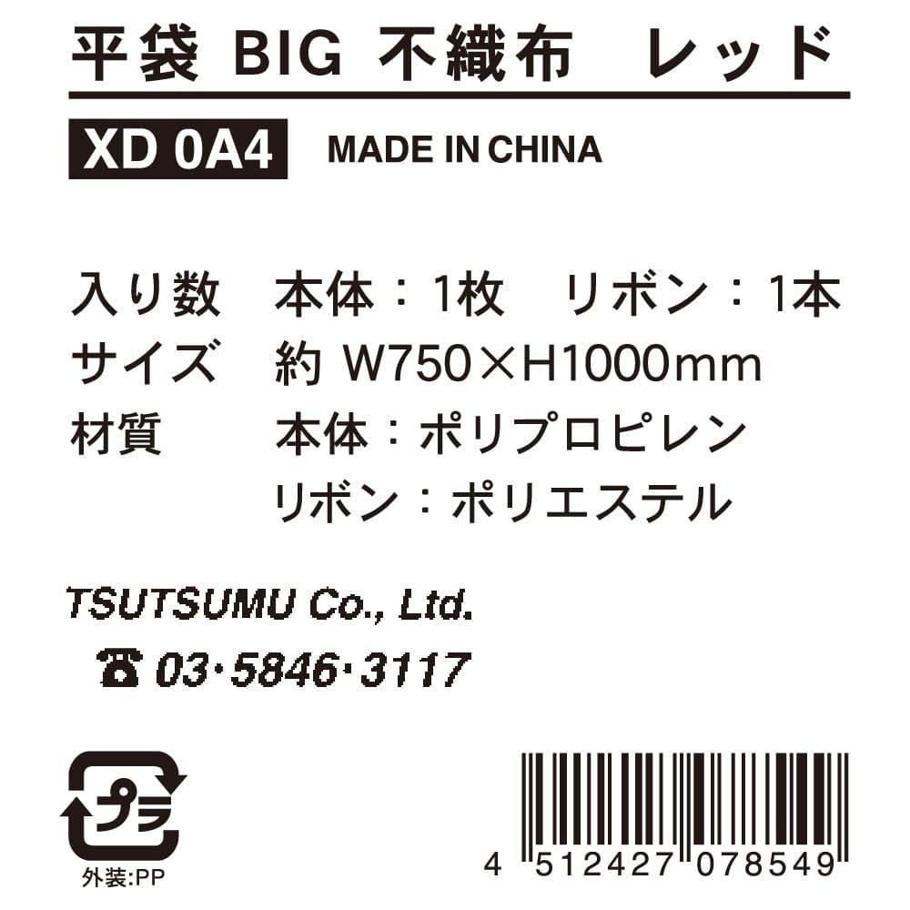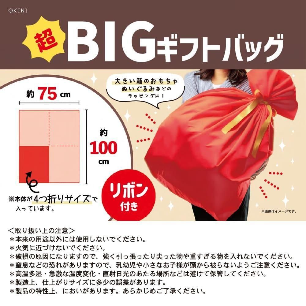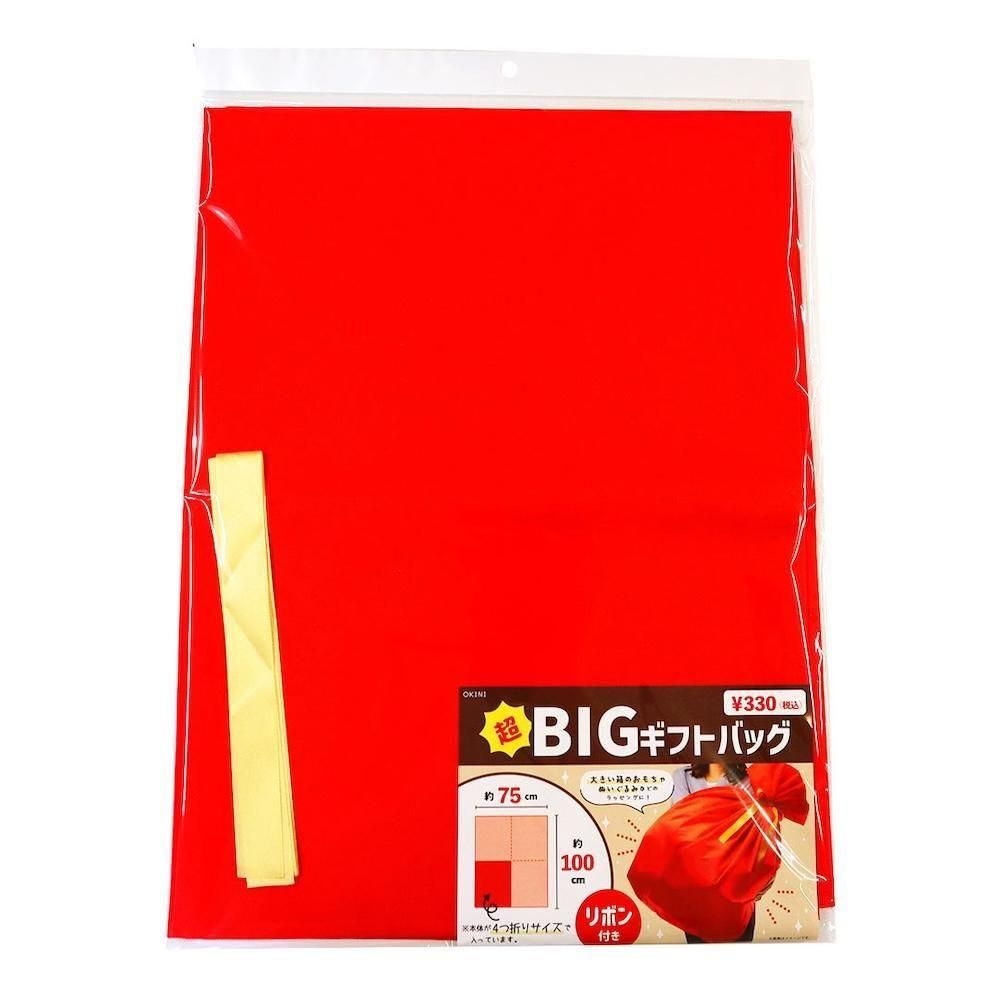 【クリスマス】OKINI 100均 平袋 ラッピング袋 10枚入 不織布 リボン付 BIG レッド 赤 ビッグサイズ