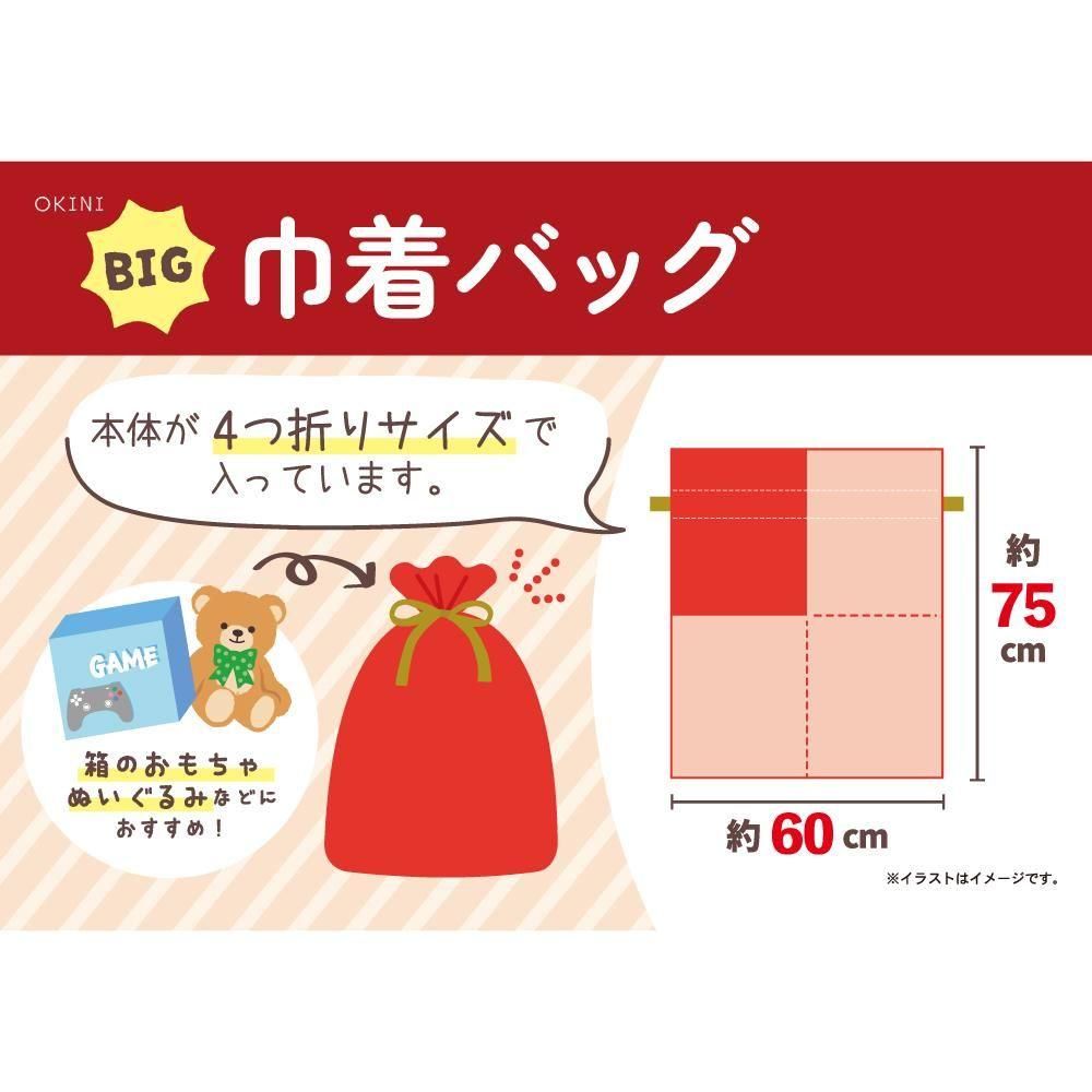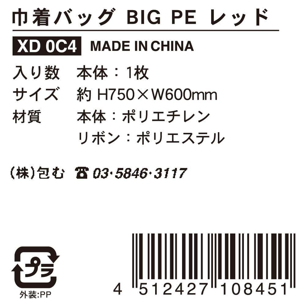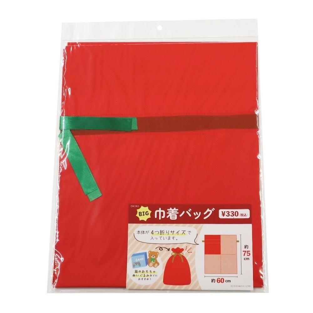 【クリスマス】OKINI 100均 巾着バッグ ラッピング袋 10枚入 ビニール BIG レッド 赤 ビッグサイズ