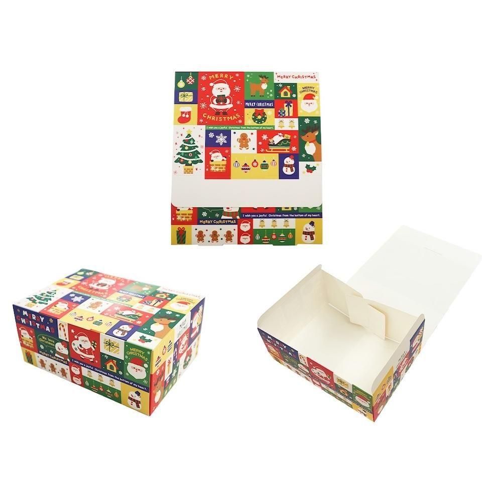 クリスマスのイラストがパッチワークのようにデザインされた、ギフトボックスです。