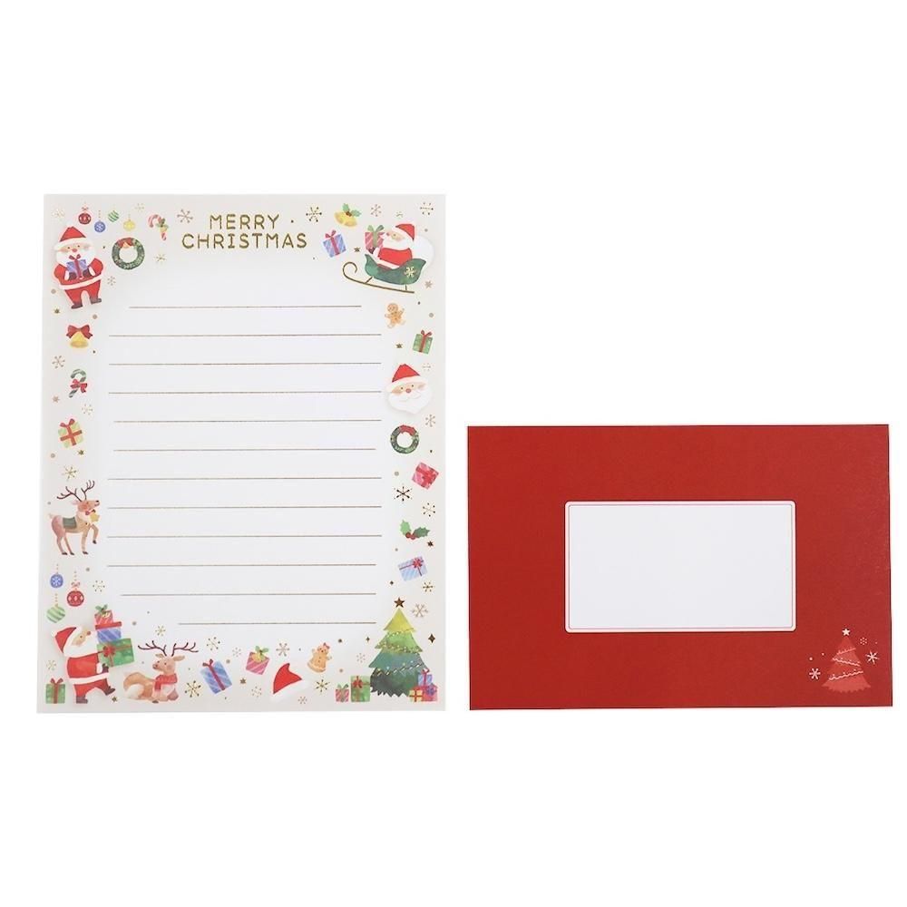 温かみのあるサンタクロースのイラストが印象的な、クリスマス柄のレターセットです。