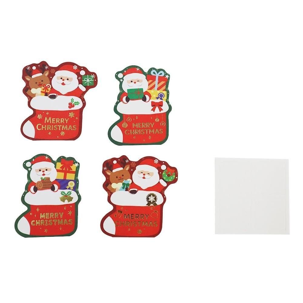 【クリスマス】OKINI 100均 メッセージカード ミニカード 40枚入 シール付 箔押し サンタくつした 靴下
