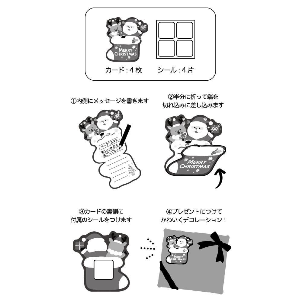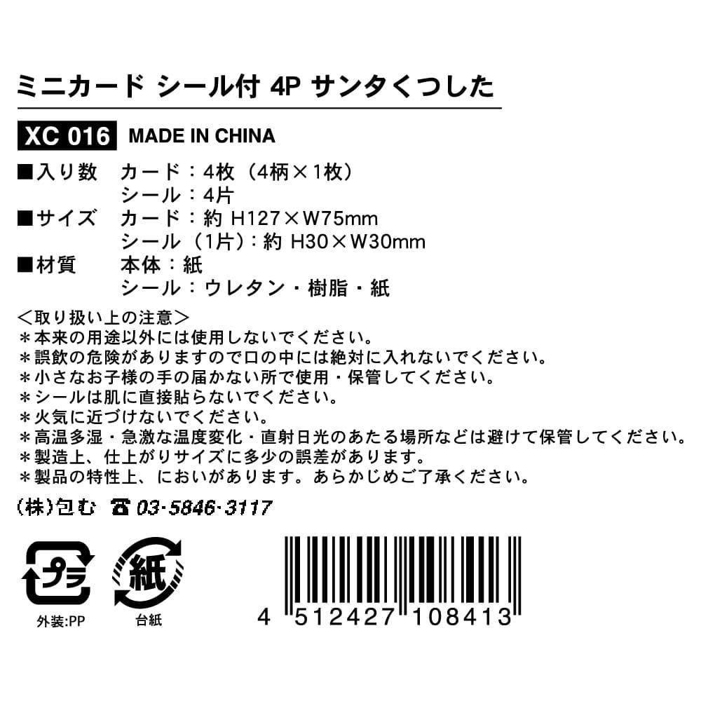 ちょっとしたスペースにも一言メッセージを貼ることができる、両面シールがセットになったクリスマス柄ミニカードです。