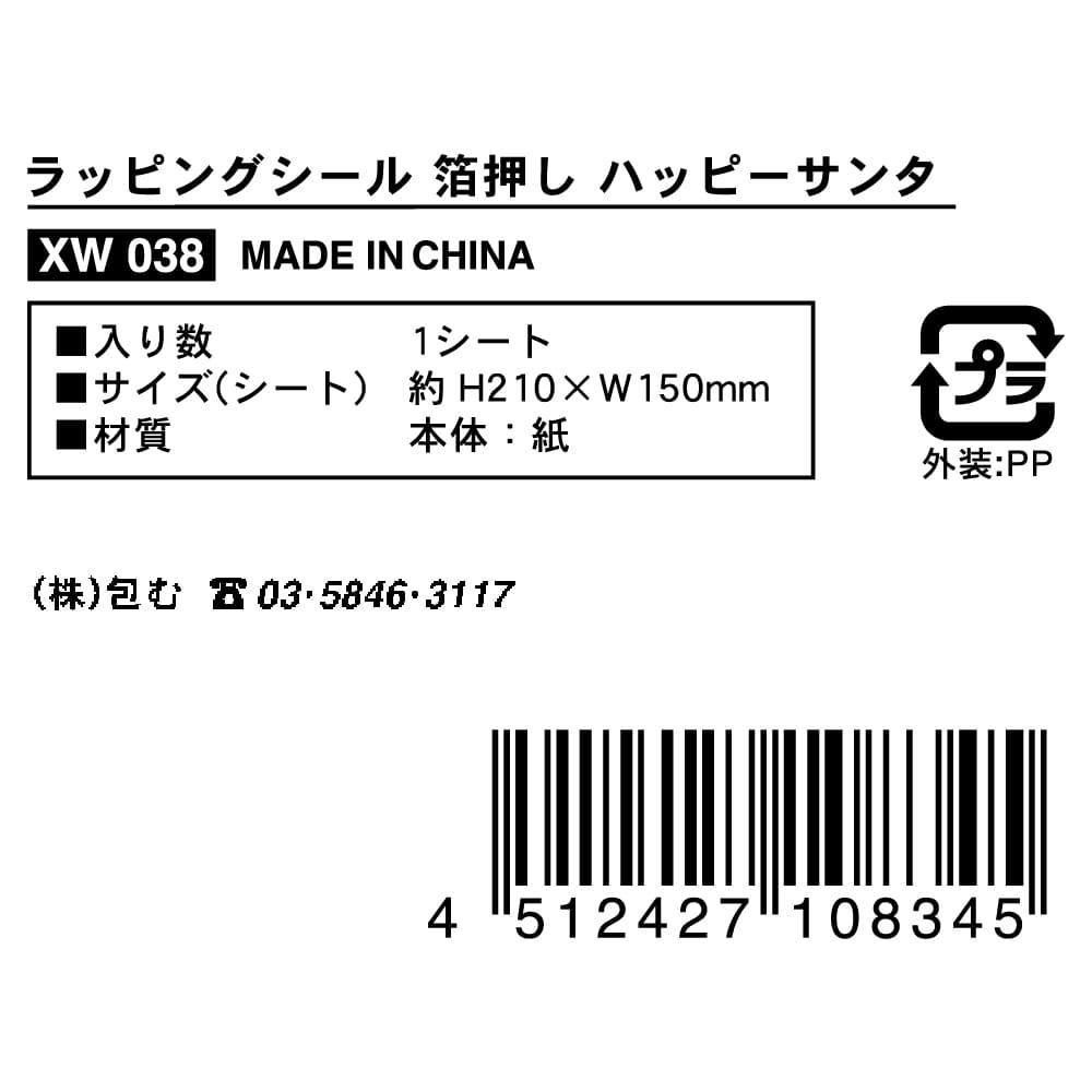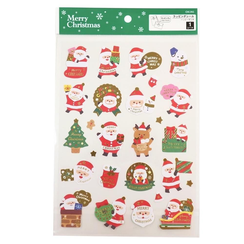 【クリスマス】OKINI 100均 ギフトシール 10個セット ラッピングシール 箔押し ハッピーサンタ