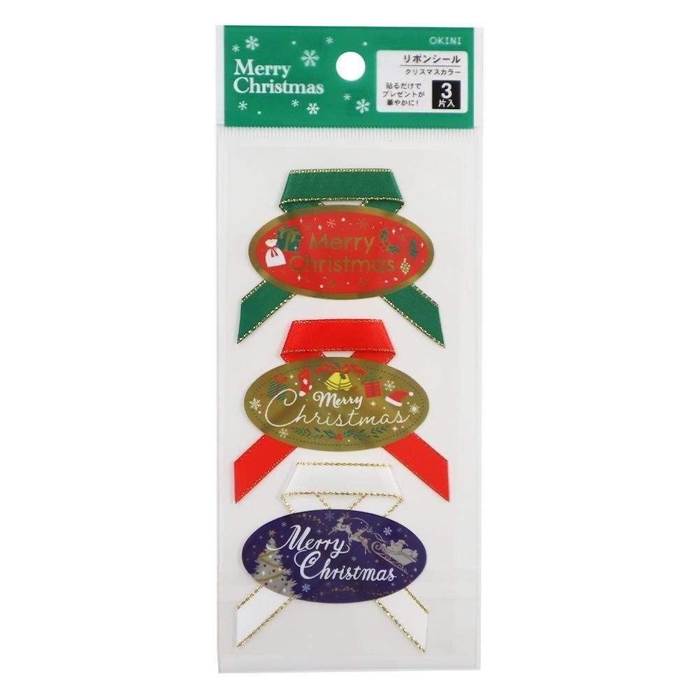 【クリスマス】OKINI 100均 ギフトシール 30片入 クリスマスカラー リボンシール 赤 金 ゴールド ネイビー