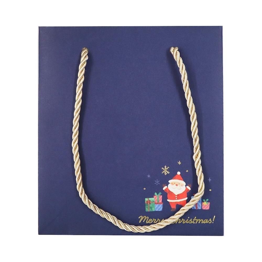 【クリスマス】OKINI 100均 紙袋 手提げ 10枚入 箔押し ウォームクリスマス サンタ SSサイズ ネイビー