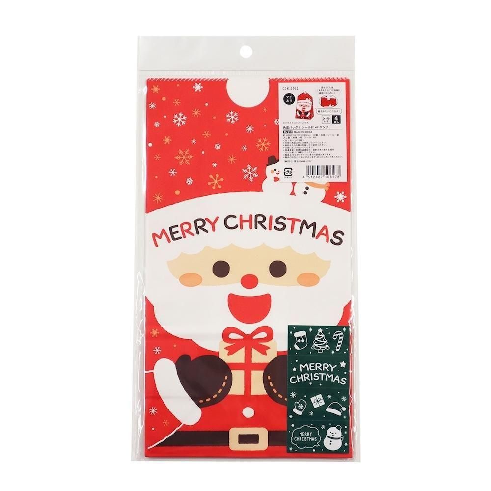 にっこり笑ったサンタクロースが大きく描かれた、クリスマスデザインの角底ペーパーバッグです。