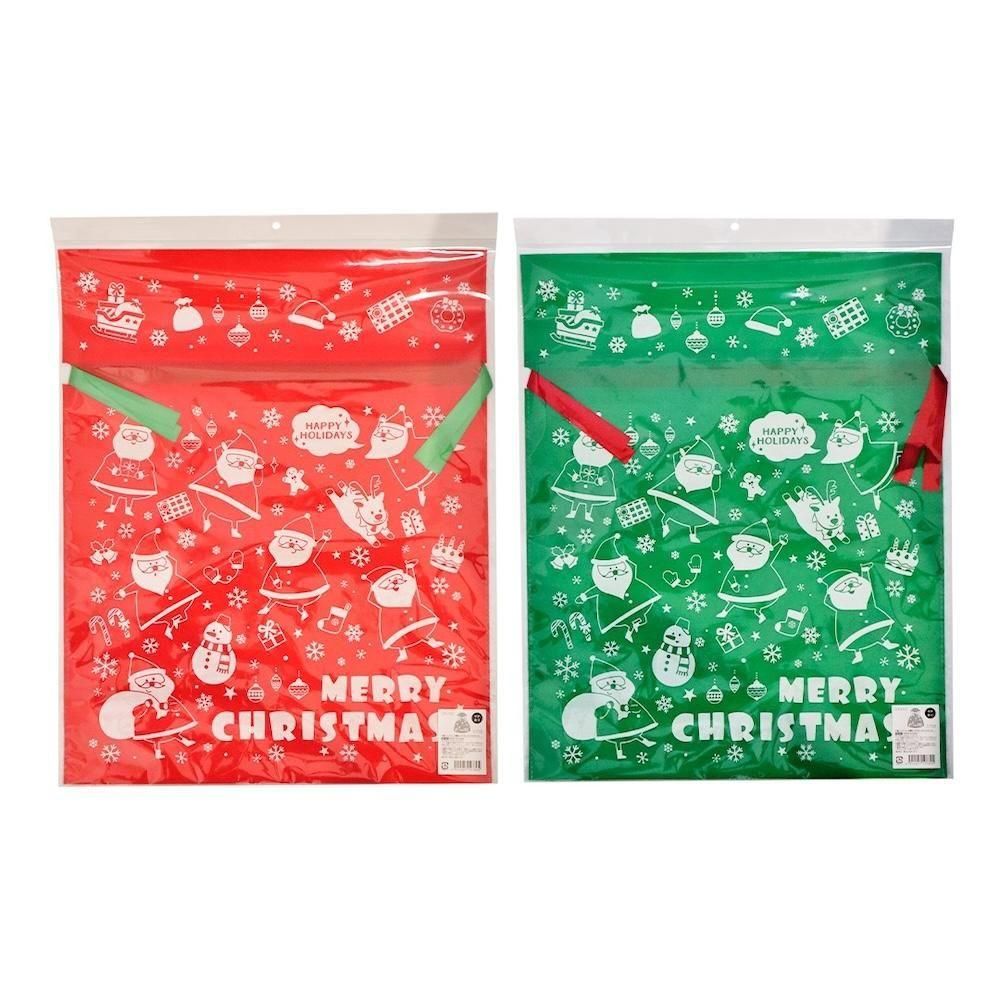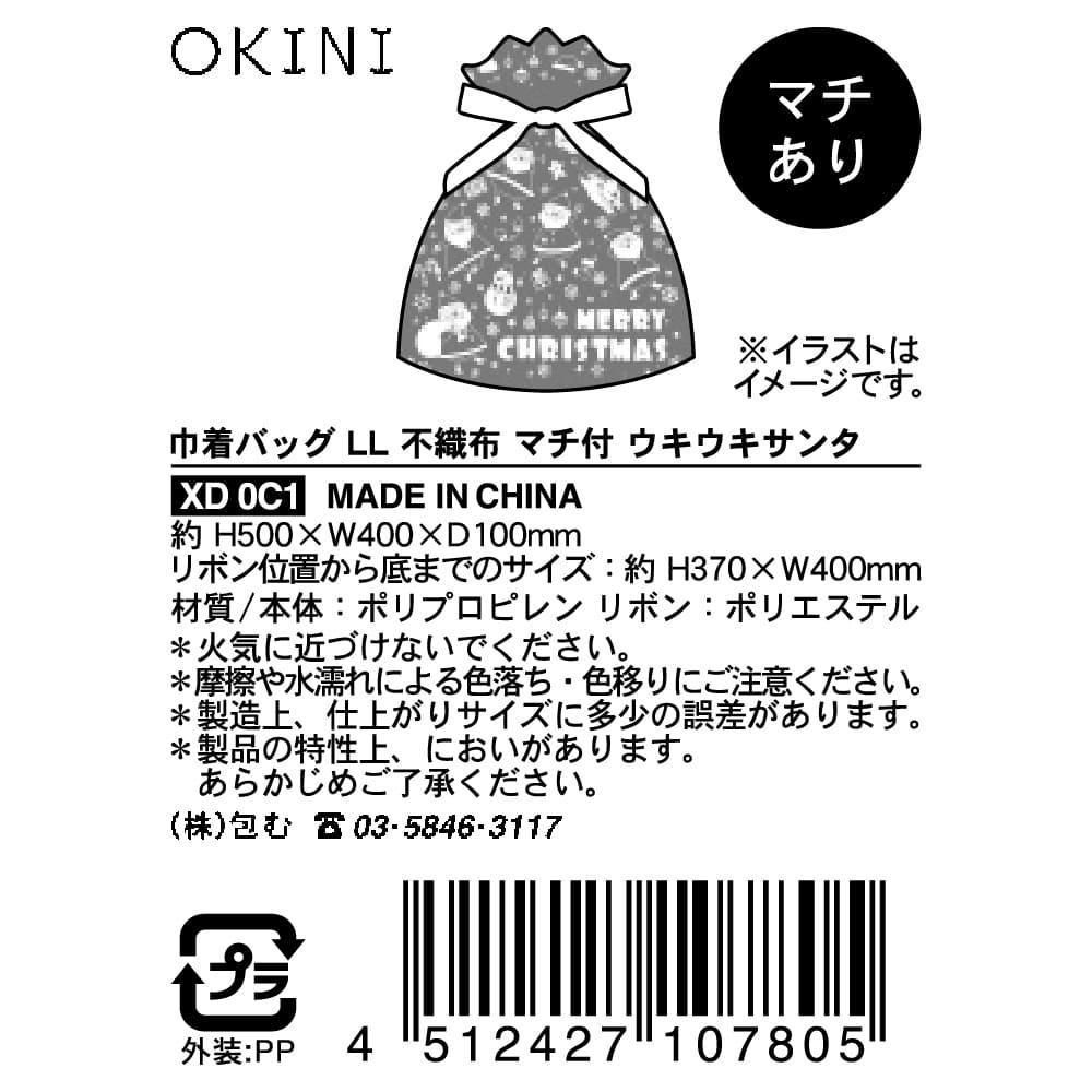 【クリスマス】OKINI 100均 巾着バッグ ラッピング袋 10枚入 不織布 マチ付 ウキウキサンタ LLサイズ 赤 緑
