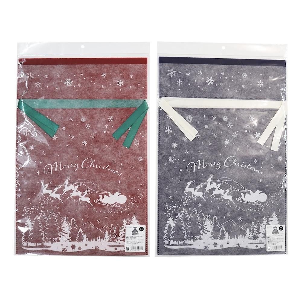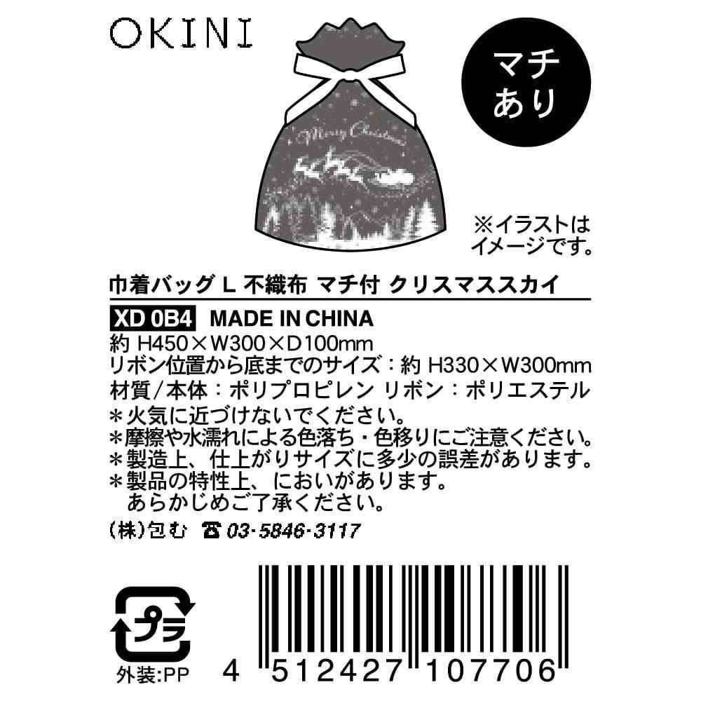 【クリスマス】OKINI 100均 巾着バッグ ラッピング袋 10枚入 不織布 マチ付 クリスマススカイ Lサイズ ネイビー 赤