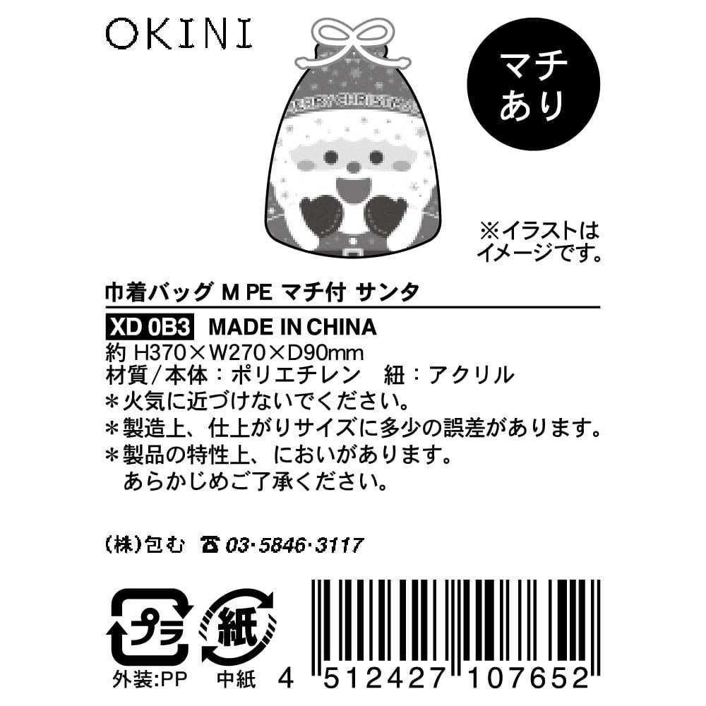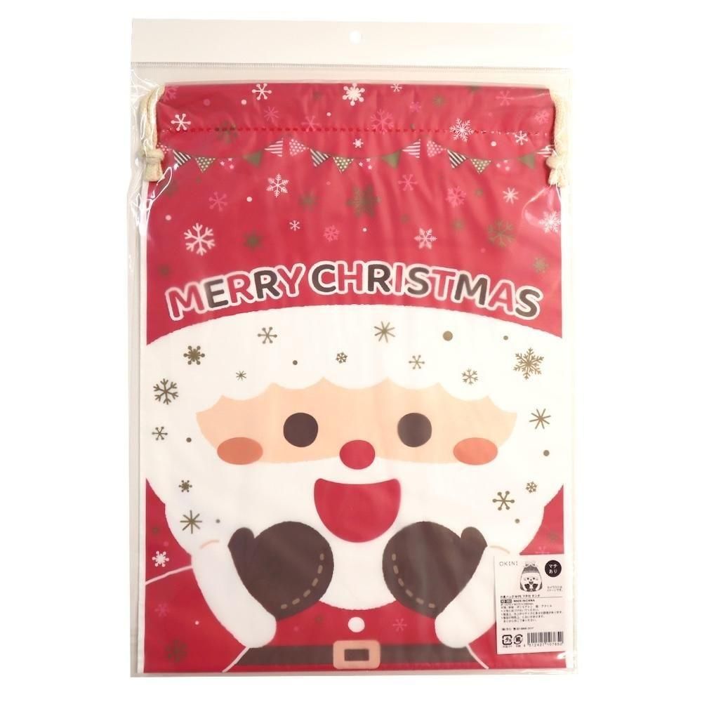 【クリスマス】OKINI 100均 巾着バッグ ラッピング袋 10枚入 ビニール マチ付 サンタ Mサイズ