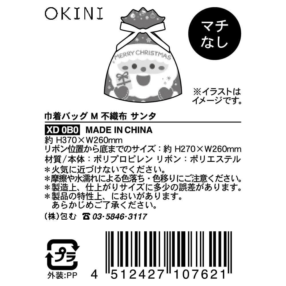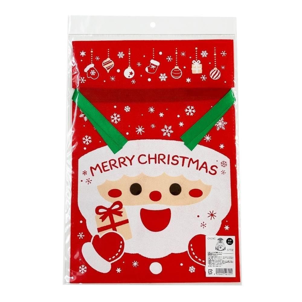 【クリスマス】OKINI 100均 巾着バッグ ラッピング袋 10枚入 不織布 サンタ Mサイズ