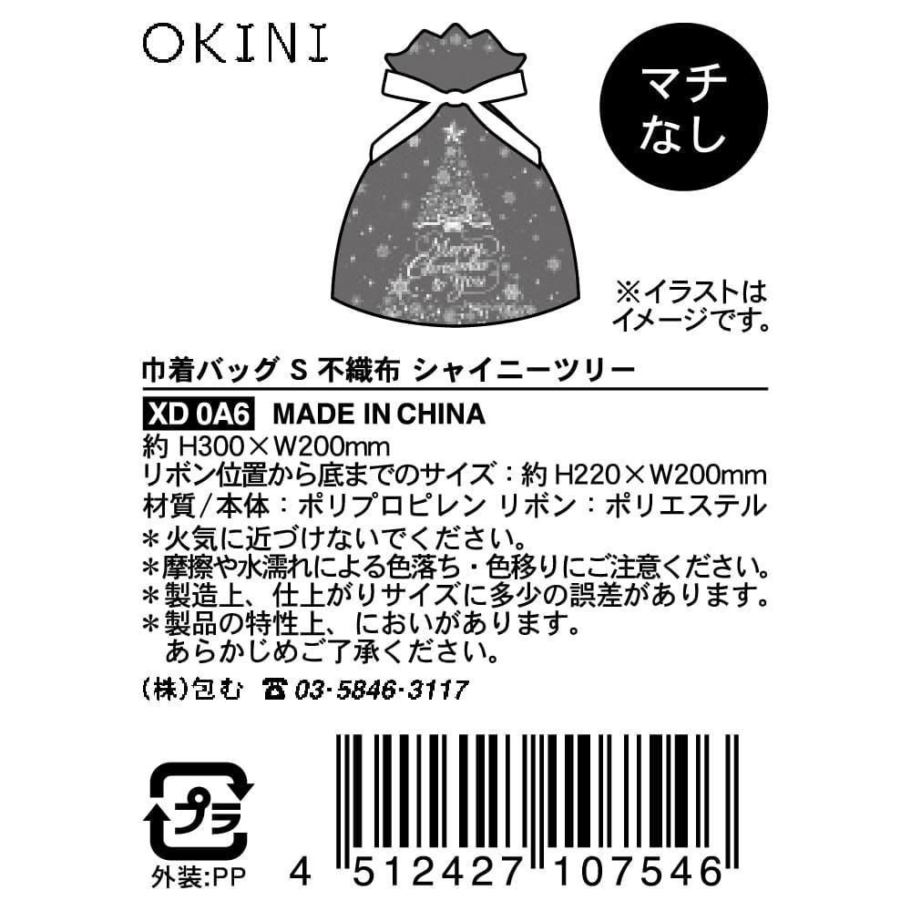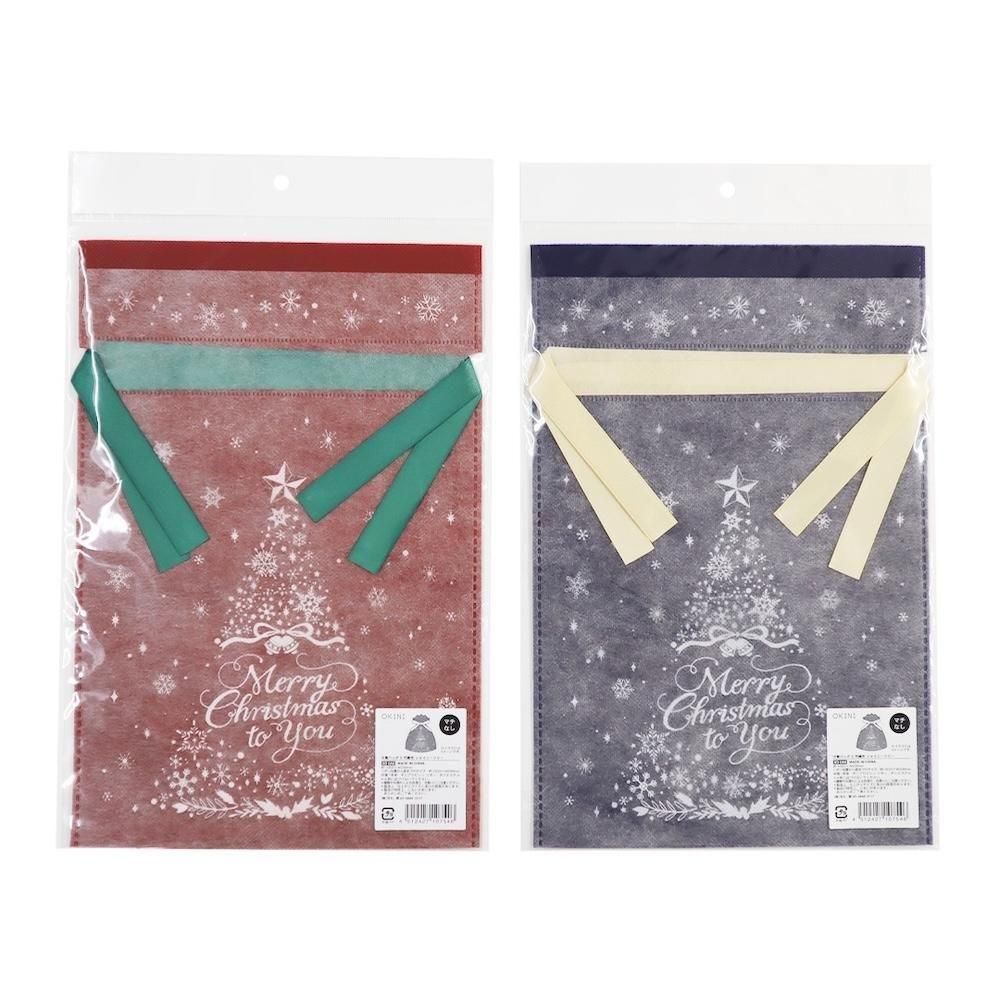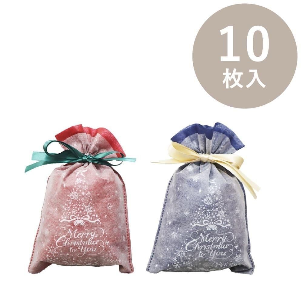 【クリスマス】OKINI 100均 巾着バッグ ラッピング袋 10枚入 不織布 シャイニーツリー Sサイズ 青 赤