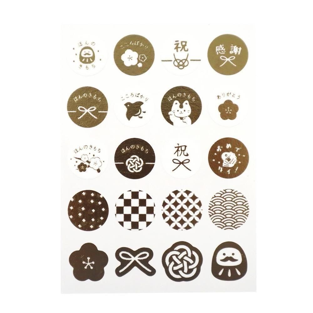 和のテイストにマッチする、金箔押し仕様のシールです。