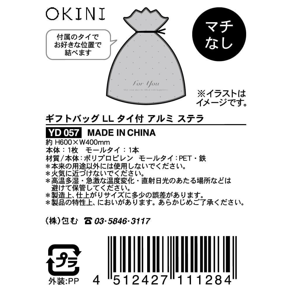 モールタイが付いた、メタリックな光沢のある平袋です。
