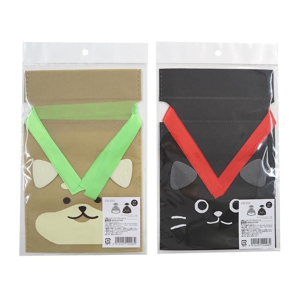 かわいらしい柴犬や黒猫が描かれた、不織布製のラッピング巾着袋です。