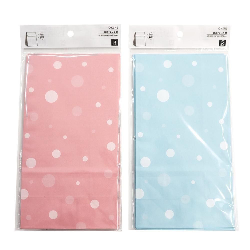 さまざまな用途に使いやすい、ドット柄の角底ペーパーバッグです。