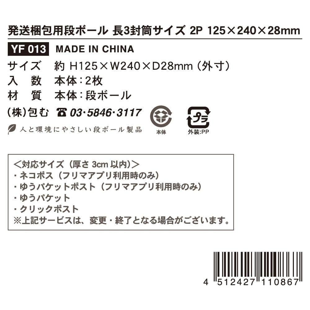 【セット割 10%OFF】OKINI 100均 発送梱包用段ボール 100個入 長形3号サイズ 約W240×D28×H125mm ポスト投函可 YF013